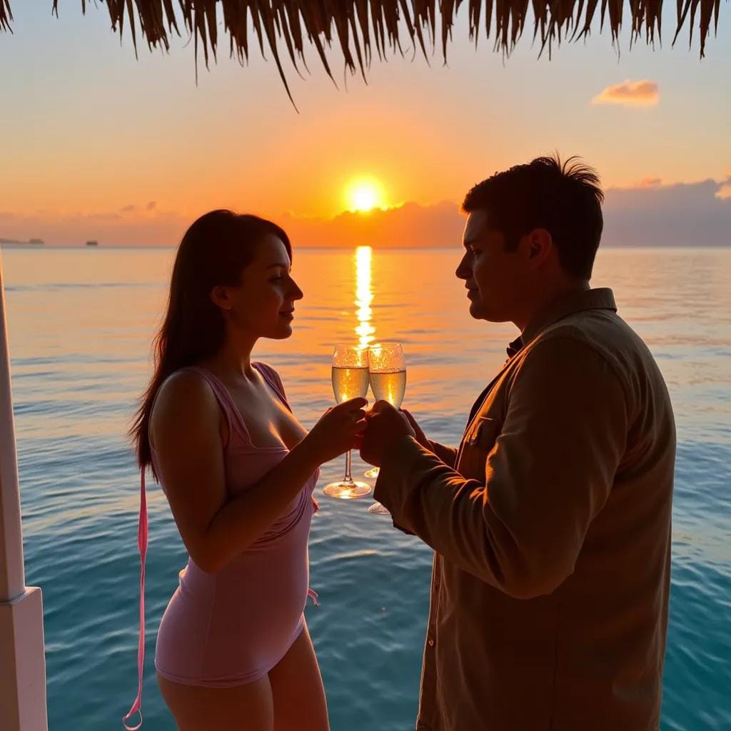 The sun had just set over the crystal-clear waters of Bora Bora, casting a warm orange glow over the luxurious overwater bungalow where I stood, sipping champagne with the enigmatic stranger who had captured my heart. As we gazed out at the endless expanse of turquoise, I couldn't help but feel a sense of connection, as if our souls had been entwined for lifetimes. "You're a mystery, aren't you?" I whispered, my eyes locked on the curve of her neck, the delicate tendon that seemed to pulse with a life of its own. She smiled, her full lips parting to reveal a hint of pink tongue.