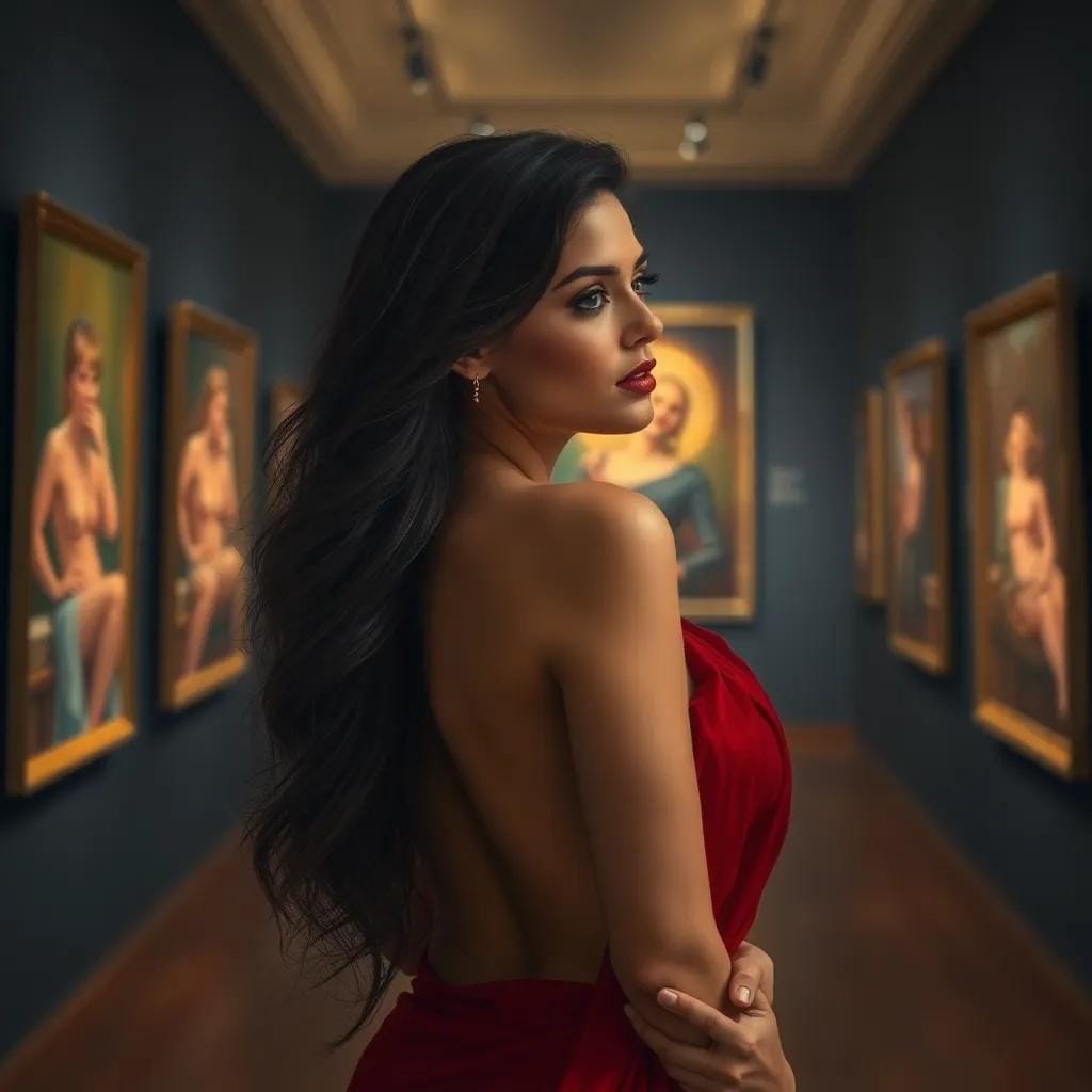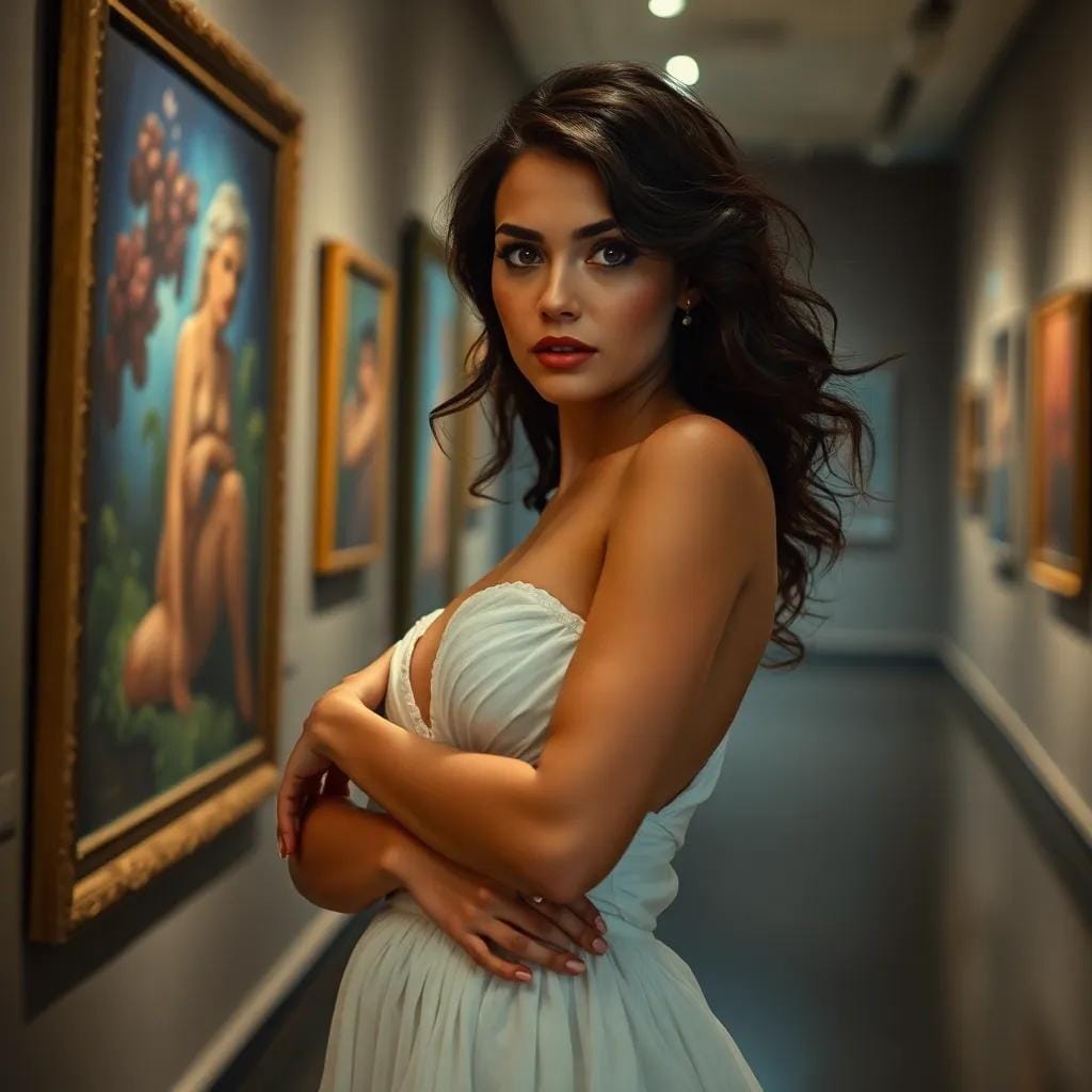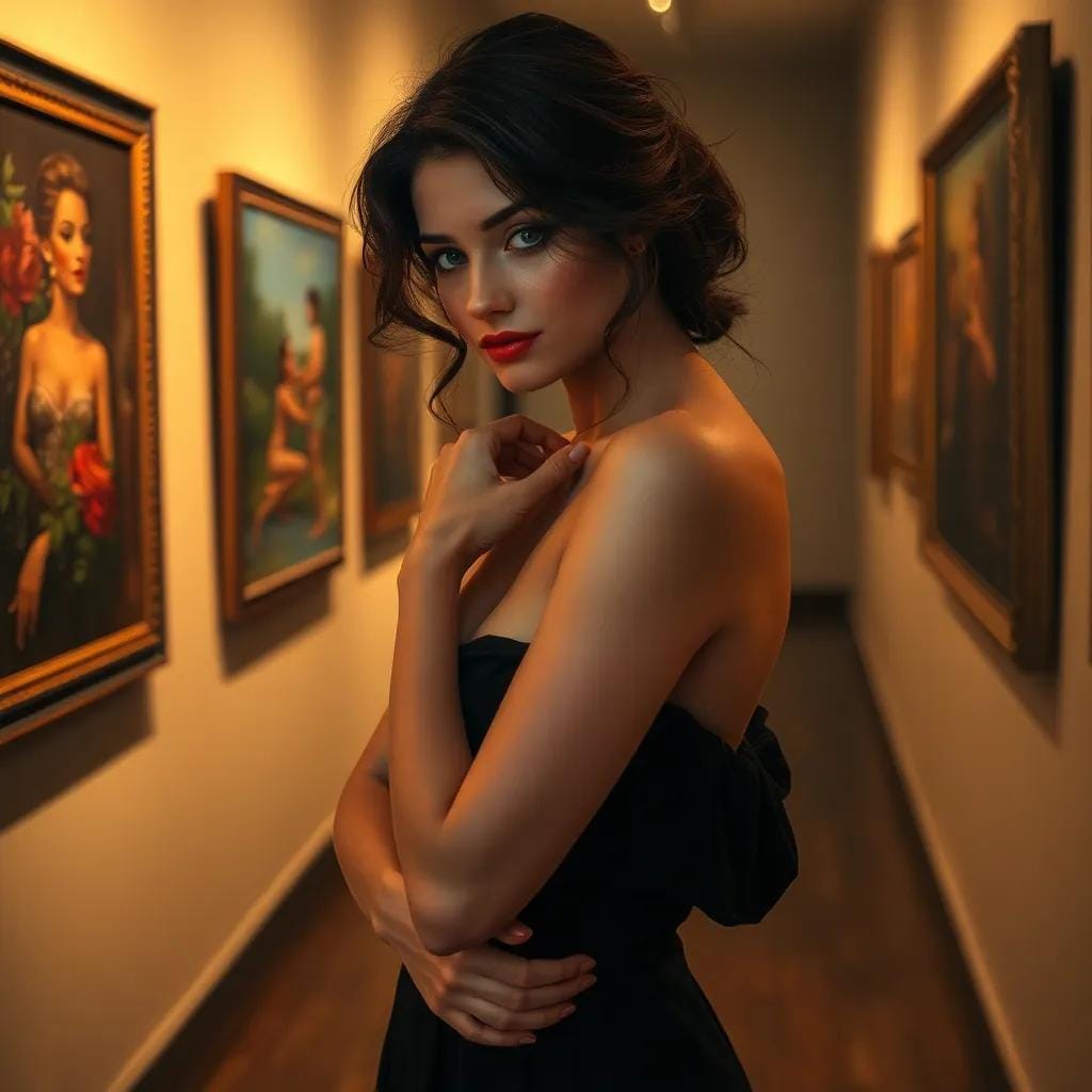 As she wandered through the hushed halls of the art gallery, her eyes drifted to a painting that seemed to whisper secrets to her soul. The colors danced across the canvas, a vibrant tapestry of emotions that left her breathless.