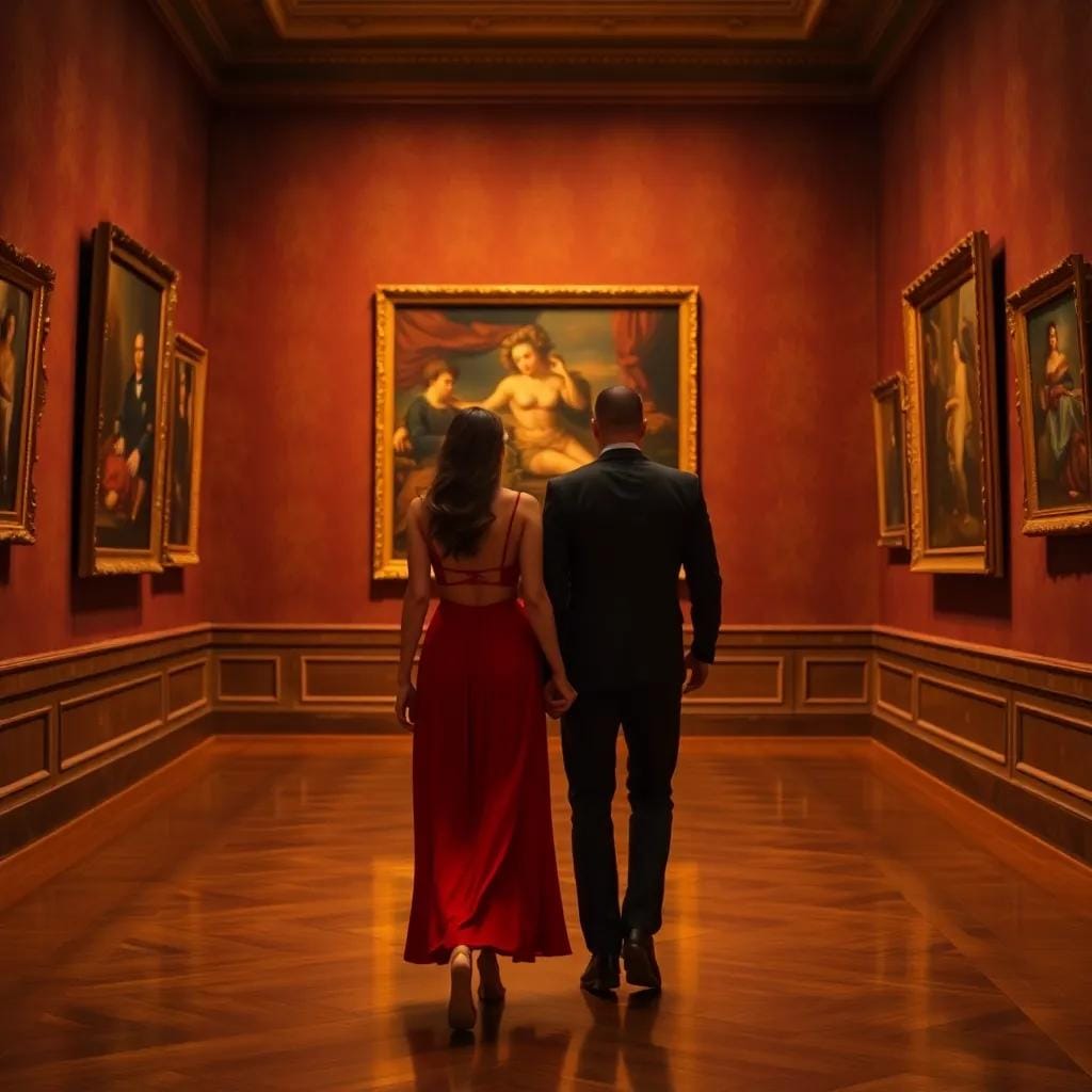 In the hushed galleries of the city's premier art museum, where masterpieces whispered secrets to the walls, Emily and James wandered hand in hand, their footsteps a gentle serenade to the evening air. The soft glow of candelabras and the subtle scent of old books wafted through the halls, transporting them to a world of beauty and wonder. As they strolled past a stunning Monet, Emily's fingers brushed against James's, sending a shiver down her spine.