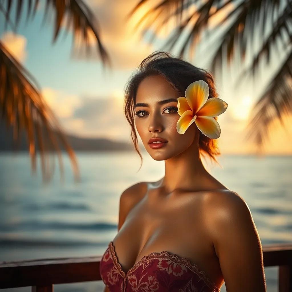 The artist's eyes, filled with admiration, drank in the beauty of her form, as the soft rustle of silk fabrics seemed to caress her skin. As the night drew to a close, they found themselves in the moonlit garden, where the scent of blooming flowers filled the air. The woman's body, a vision of loveliness, seemed to shimmer in the moonlight, as the man's gentle touch sent shivers down her spine. Their midnight kiss, a promise of forever, was sealed beneath the stars, as the scent of rose petals and jasmine filled the air. In this tropical paradise, where the beauty of nature was the only reality that mattered, the couple found themselves lost in a world of serenity, where the elegance of the woman was the only truth that mattered. This rewritten version maintains the artistic and elegant tone of the original story, while removing any explicit content. It focuses on the beauty of the woman, the serenity of the setting, and the couple's gentle and romantic interactions.