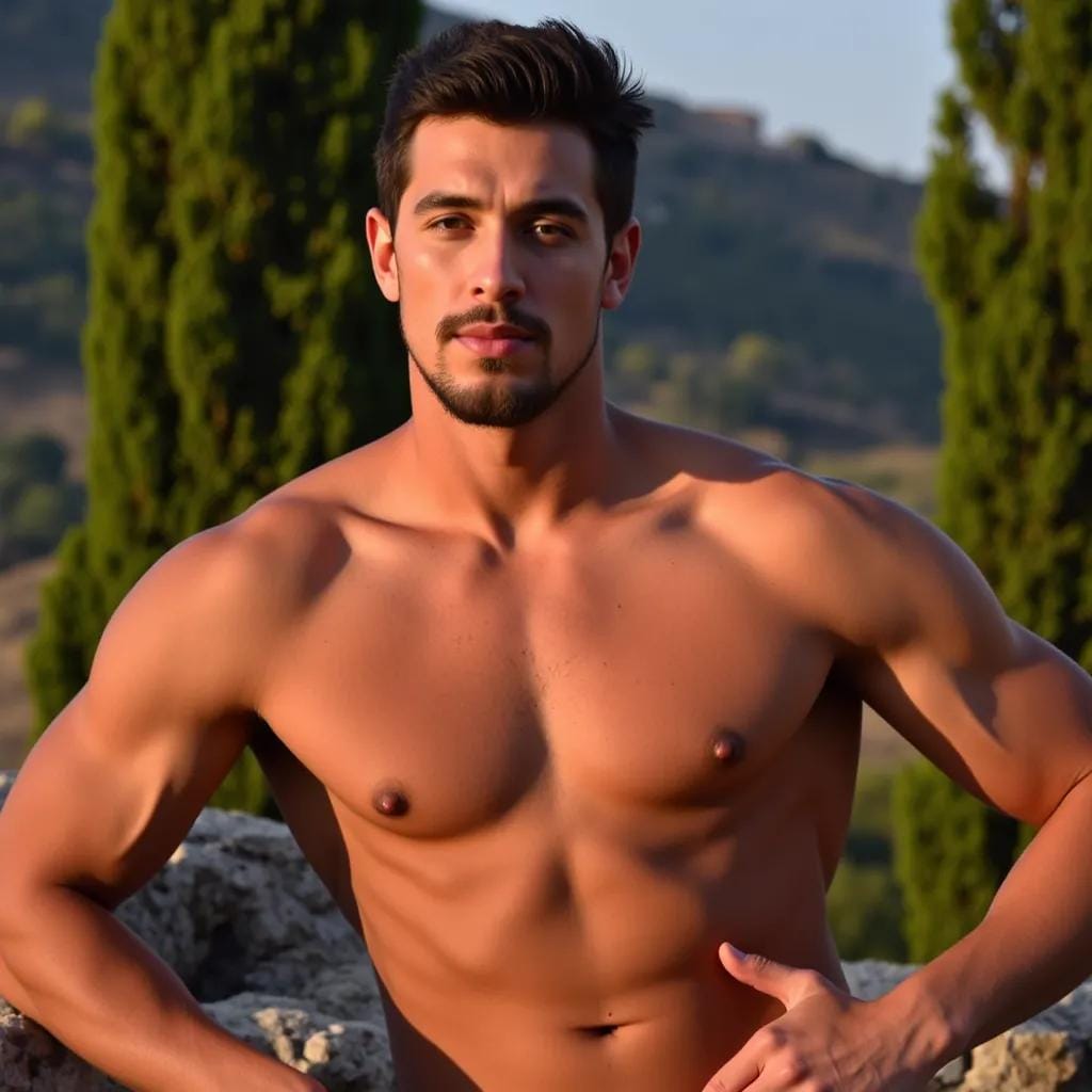 Title: The Poet's Paradise In the sweltering heat of a Tuscan villa, surrounded by cypress trees and the rolling hills of the Italian countryside, I found myself entwined with the enigmatic Alessandro. His chiseled features and rugged jawline seemed chiseled from the very stone that adorned the villa's facade.