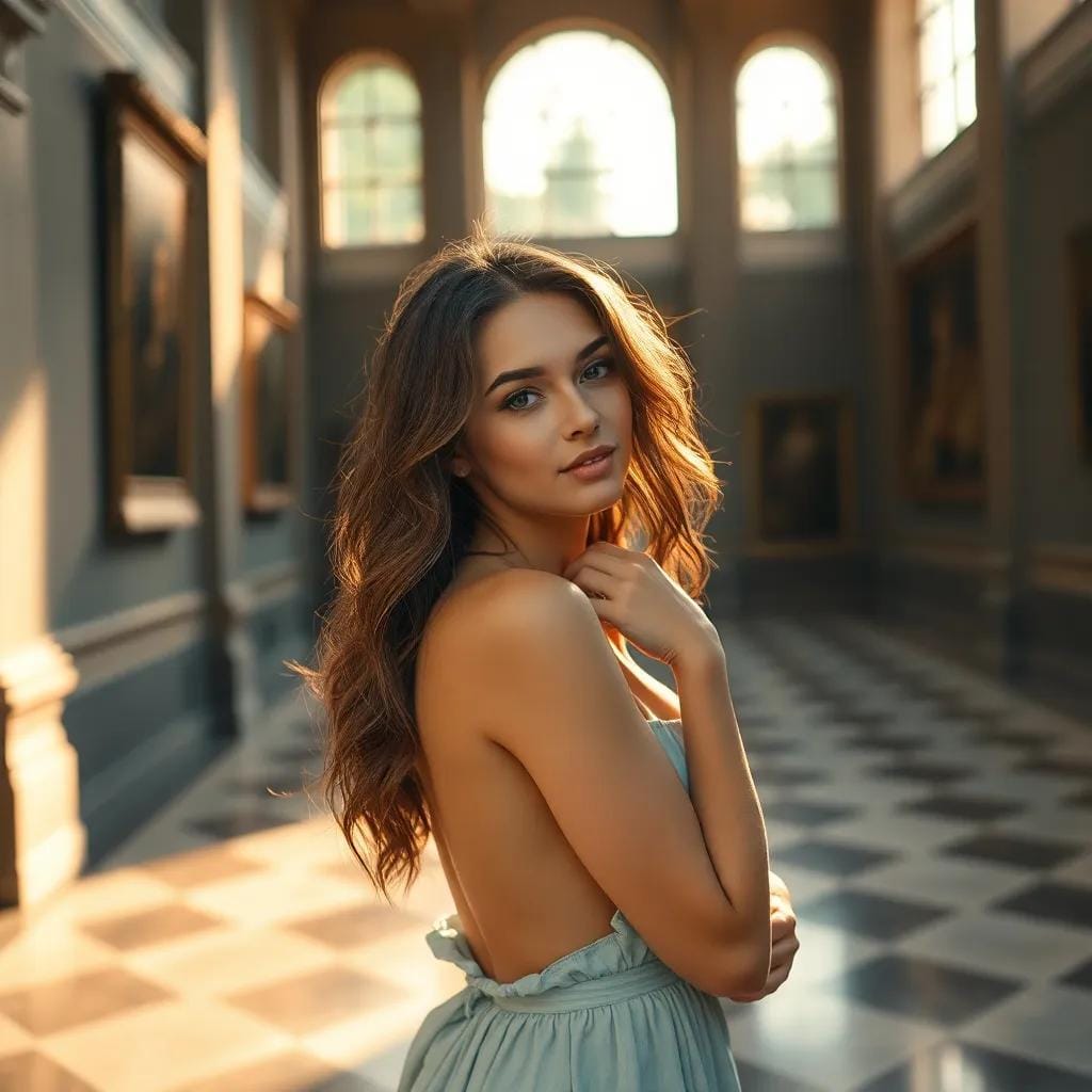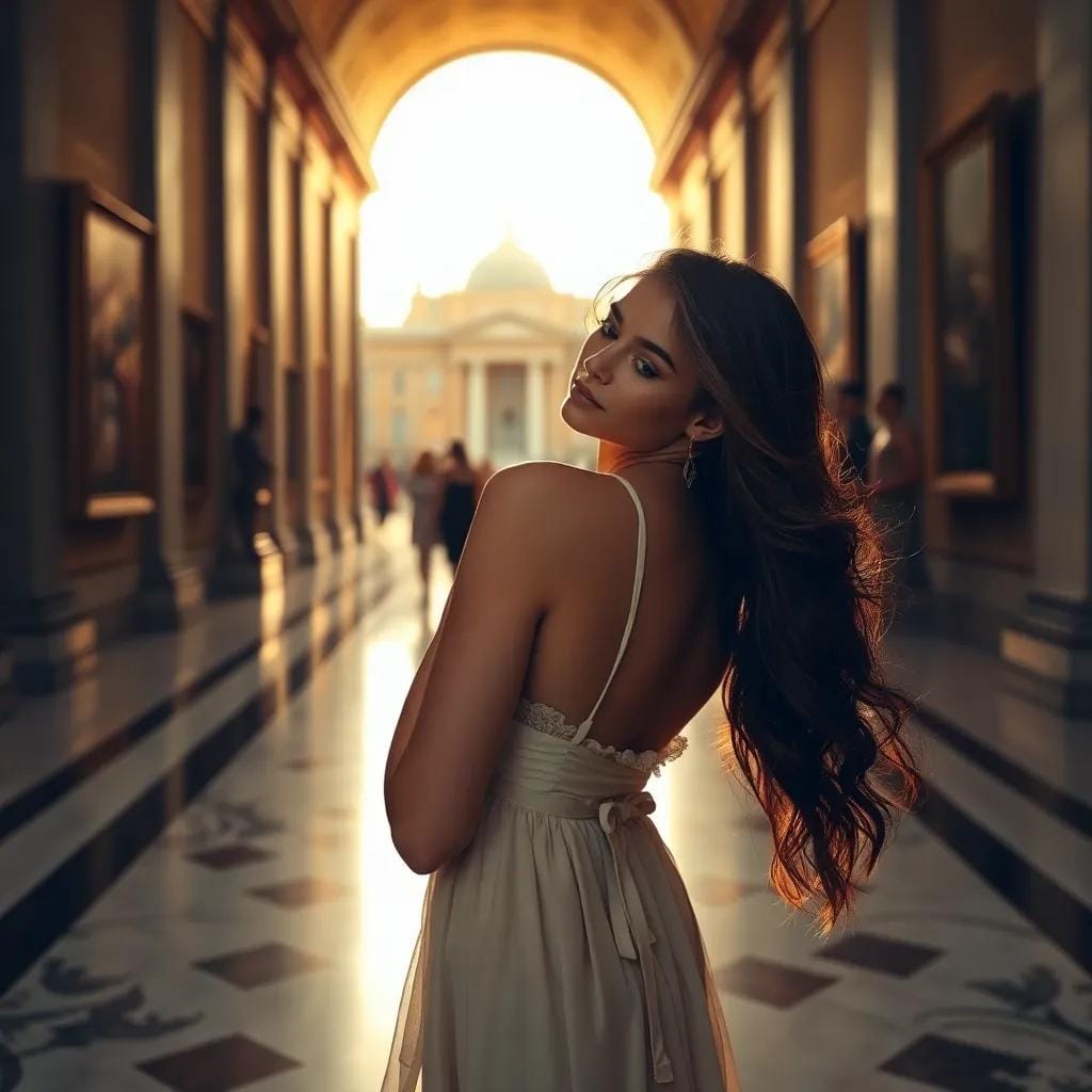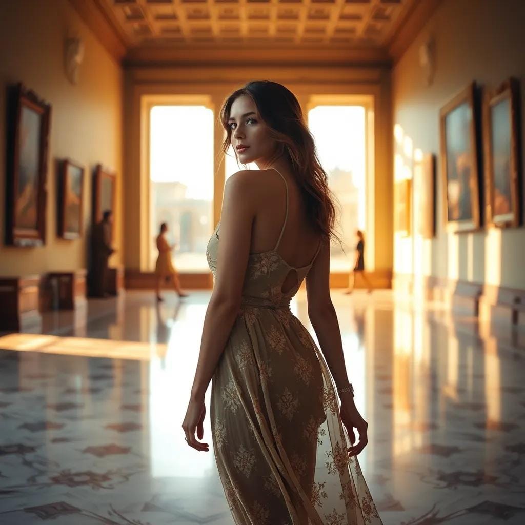 In the soft, golden light of the late afternoon, Emma wandered through the hallowed halls of the city's premier art gallery, her footsteps echoing off the polished marble floors. The air was alive with the whispers of masterpieces past, their brushstrokes and colors weaving a tapestry of beauty and emotion.