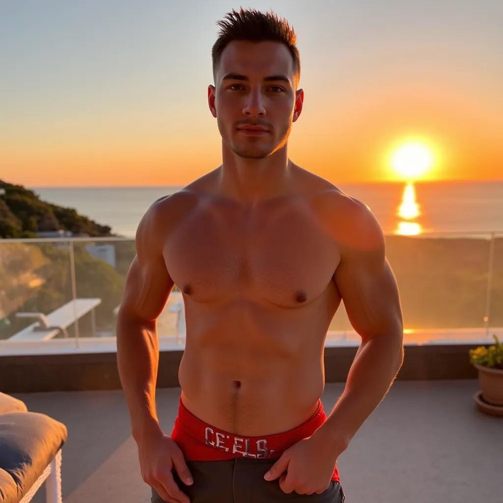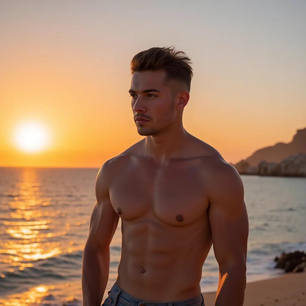As the sun dipped below the horizon, casting a warm orange glow over the secluded beachside villa, the air was alive with anticipation. It was a night like any other in the exclusive retreat, where the world's most beautiful men gathered to indulge in their desires.