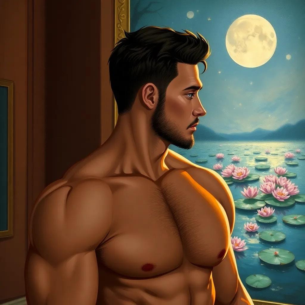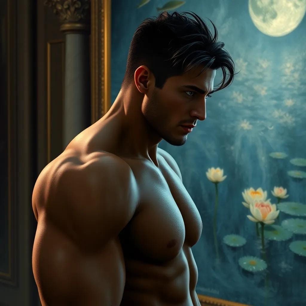 In the hushed grandeur of the city's premier art gallery, Captain Adair stood before a masterpiece of Impressionist brushstrokes, her eyes drinking in the soft luminescence of Monet's "Water Lilies." The curator, a bespectacled man with a warm smile, hovered nearby, awaiting her verdict. As she turned to share her thoughts, her gaze met that of a stranger, standing at the edge of the room, his eyes locked intently upon her. "Phasers locked on target, Captain," he whispered, his voice low and smooth as honey, as if sharing a secret only she could hear. Adair's cheeks flushed, and she felt a shiver run down her spine.