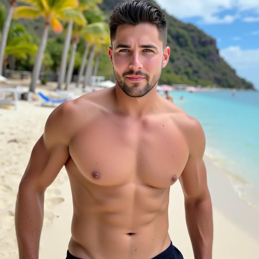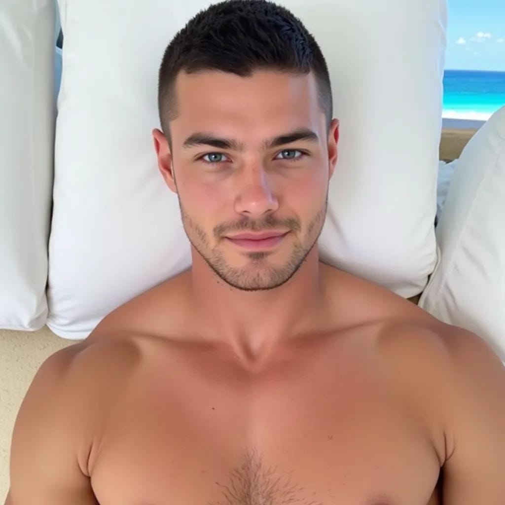 The one who had captured my heart with his piercing blue eyes and chiseled physique. I had met him in a secluded beachside villa, where the warm sand and crystal-clear waters seemed to whisper secrets to us as we lounged together. As the sun dipped into the ocean, casting a golden glow over the landscape, he took my hand and led me to the villa's private pool. The water sparkled like diamonds, and I couldn't help but feel like a goddess, worshipped by this Adonis. He began to massage my shoulders, his fingers gliding effortlessly over my skin, sending shivers down my spine. As the massage progressed, his hands wandered lower, tracing the curves of my body.