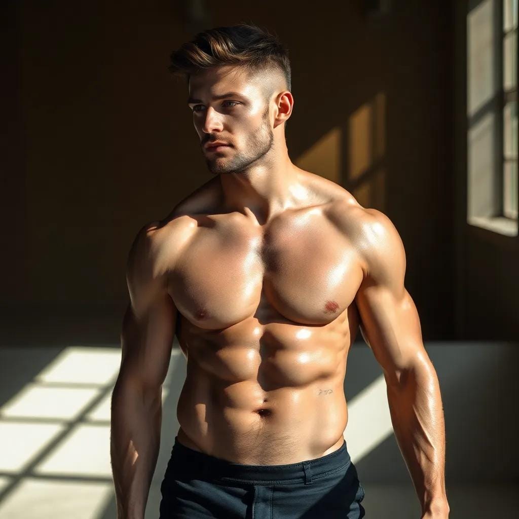 The sun-drenched studio was a canvas of rugged beauty, where masculine physiques converged in a tapestry of strength and artistry. Before me, the subject of my artistic endeavors stood tall, his chiseled abs a testament to the power of dedication and hard work. His strong jawline, a masterwork of angular perfection, seemed chiseled from the very stone of resilience itself. As I set my brush to canvas, he assumed the dominant pose I had requested, his rugged beauty a palpable force that seemed to draw the very air from the room. His skin, a map of ridges and valleys, seemed to shimmer in the golden light, inviting my gaze to linger upon its every contour. My eyes roamed the expanse of his muscular physique, drinking in the sight of his broad shoulders, his powerful chest, and the lean, chiseled lines of his arms. His features, a symphony of strength and beauty, seemed to speak directly to my soul, awakening a deep and primal appreciation for the human form. As I painted, my fingers seemed to move of their own accord, tracing the curves of his body with a sensual touch that was almost, but not quite, a caress. His eyes, a piercing blue that seemed to see right through me, watched me with a knowing glint, as if he were aware of the artistic desires that burned within me. And yet, despite the intensity of my gaze, he stood unmoving, a statue of rugged masculinity that seemed to embody the very essence of masculine allure. His strength, a palpable force that seemed to fill the room, drew me inexorably closer, until I was but a mere whisper away from the warmth of his skin. In that moment, I knew that I was but a mere artist, a mere mortal, and he was the very embodiment of the human spirit. His rugged sensuality, a force that seemed to defy the very laws of nature, had awakened a deep and primal appreciation within me, a sense of awe and wonder that I knew I could never fully capture. And yet, I was drawn to him, like a moth to flame, helpless to resist the allure of his rugged beauty. I painted on, my brushstrokes growing more frenzied, more passionate, as I sought to capture the essence of his masculine charm. As the sun dipped below the horizon, casting the studio in a warm, golden light, I finally laid down my brush, exhausted but exhilarated by the experience. Before me, the canvas seemed to pulsate with life, a vibrant, living thing that seemed to embody the very essence of his rugged masculinity. I stepped back, my eyes drinking in the sight of my creation, and knew that I had captured something truly special. The painting, a masterpiece of artistic expression, seemed to speak directly to the soul, awakening a deep and primal appreciation within all who beheld it. And at its center, the subject of my artistic endeavors stood tall, a statue of rugged masculinity that seemed to embody the very essence of masculine strength and artistic inspiration. His eyes, a piercing blue that seemed to see right through me, watched me with a knowing glint, as if he were aware of the artistic desires that burned within me. I knew, in that moment, that I would never be able to look at him the same way again. He had awakened a deep and primal appreciation within me, a sense of awe and wonder that I knew I could never fully capture. And yet, I was drawn to him, like a moth to flame, helpless to resist the allure of his rugged beauty.
