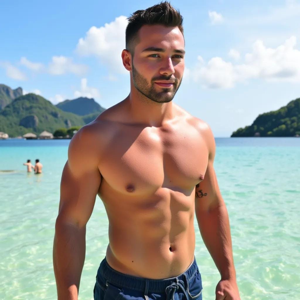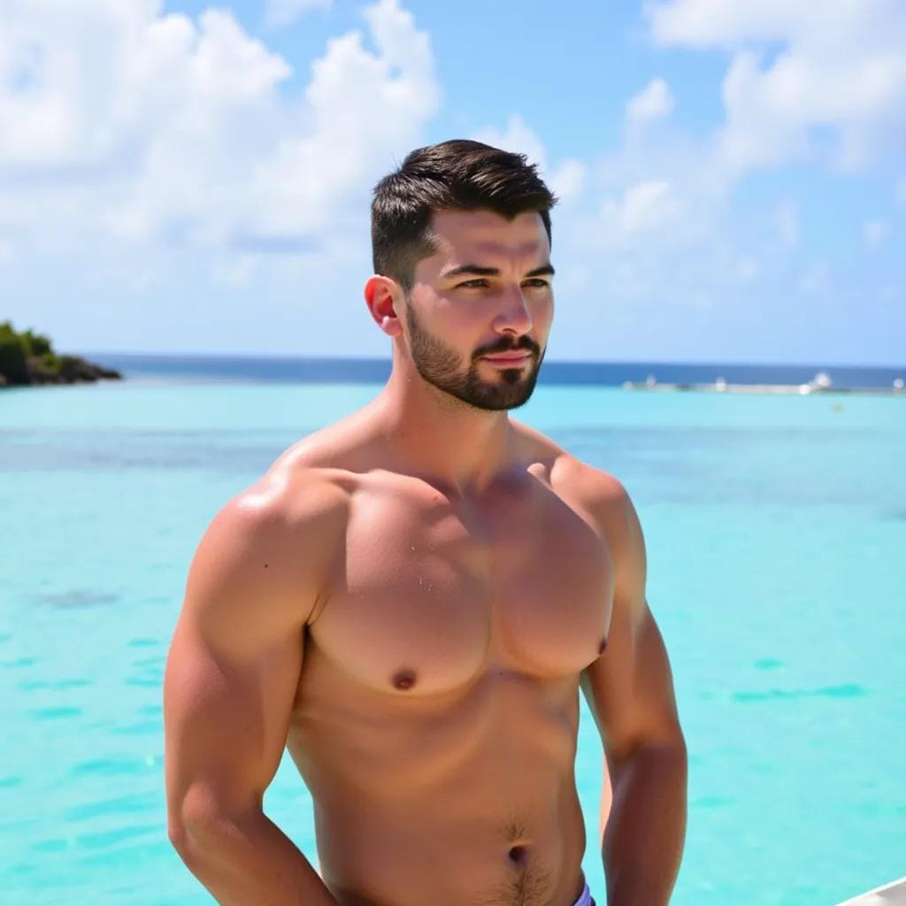 As we continued our leisurely stroll, I found myself becoming increasingly entranced by the fluid movements of his powerful physique, the way the sunlight danced across his taut muscles. As the sun began to set, casting a warm orange glow over the island, Maximilian led me to a secluded cove, the sound of the waves gently lapping against the shore the only accompaniment to our intimate encounter.