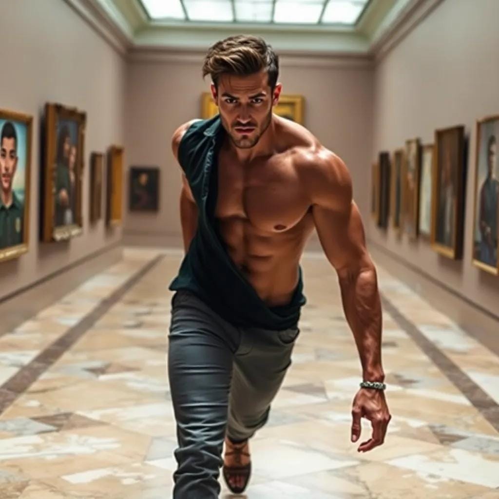 As she wandered through the hallowed halls of the art gallery, Lena's footsteps echoed off the marble floors, her eyes drinking in the vibrant colors and textures that danced across the walls. The air was alive with the soft murmur of conversation and the gentle rustle of pages turned in art books.