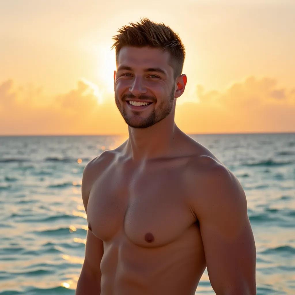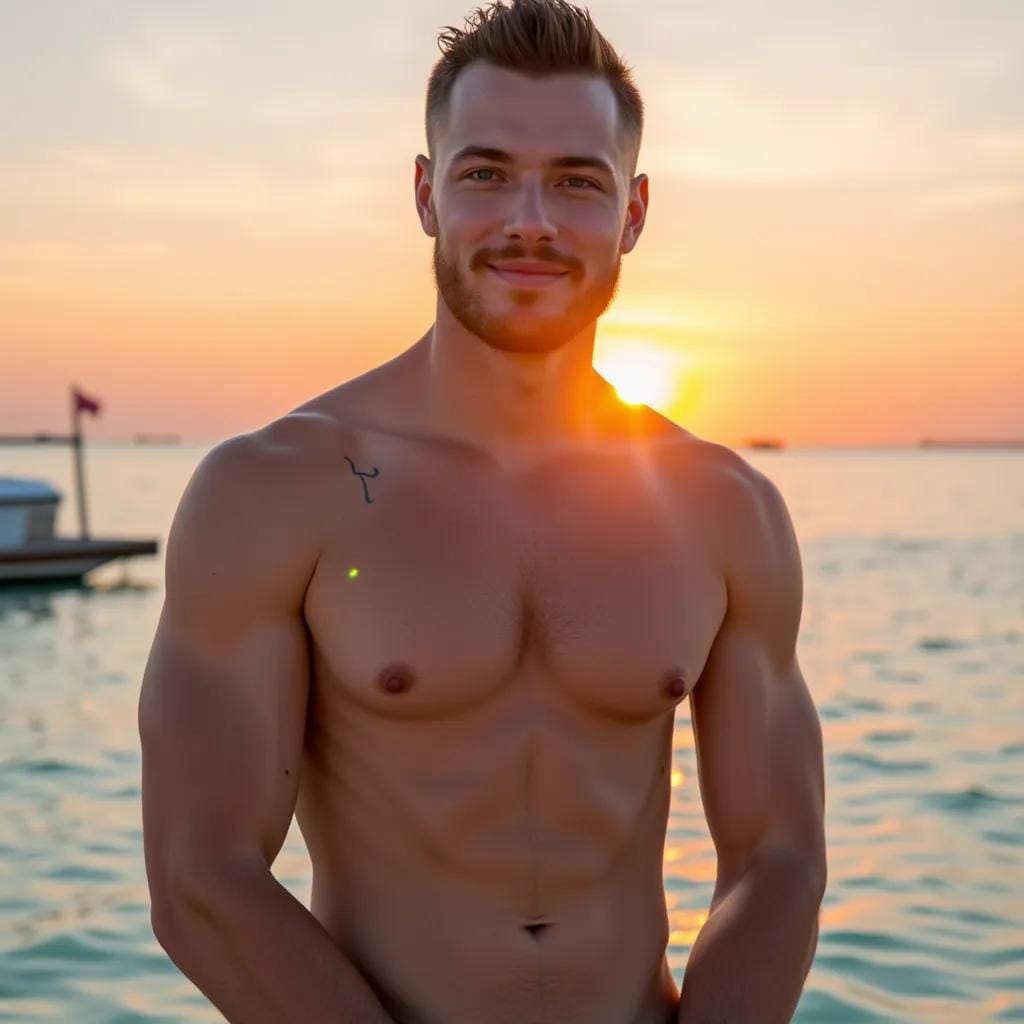 Most people have a mind that's open by appointment only, but mine was perpetually open, a window to the deepest desires that lay hidden within. It was there, on that secluded beach, that I first laid eyes on him. His chiseled physique, honed from years of surfing and sailing, was a sight to behold. His rugged jawline, flecked with a hint of stubble, seemed to be chiseled from the very same stone as the ancient temples that dotted the island.