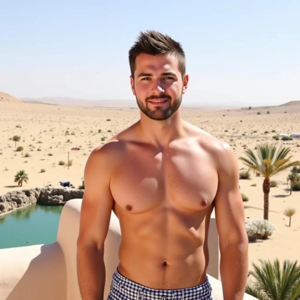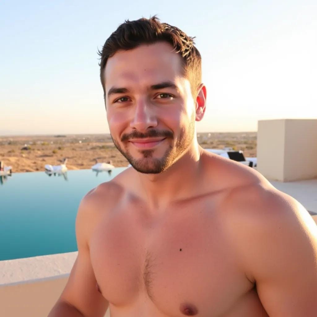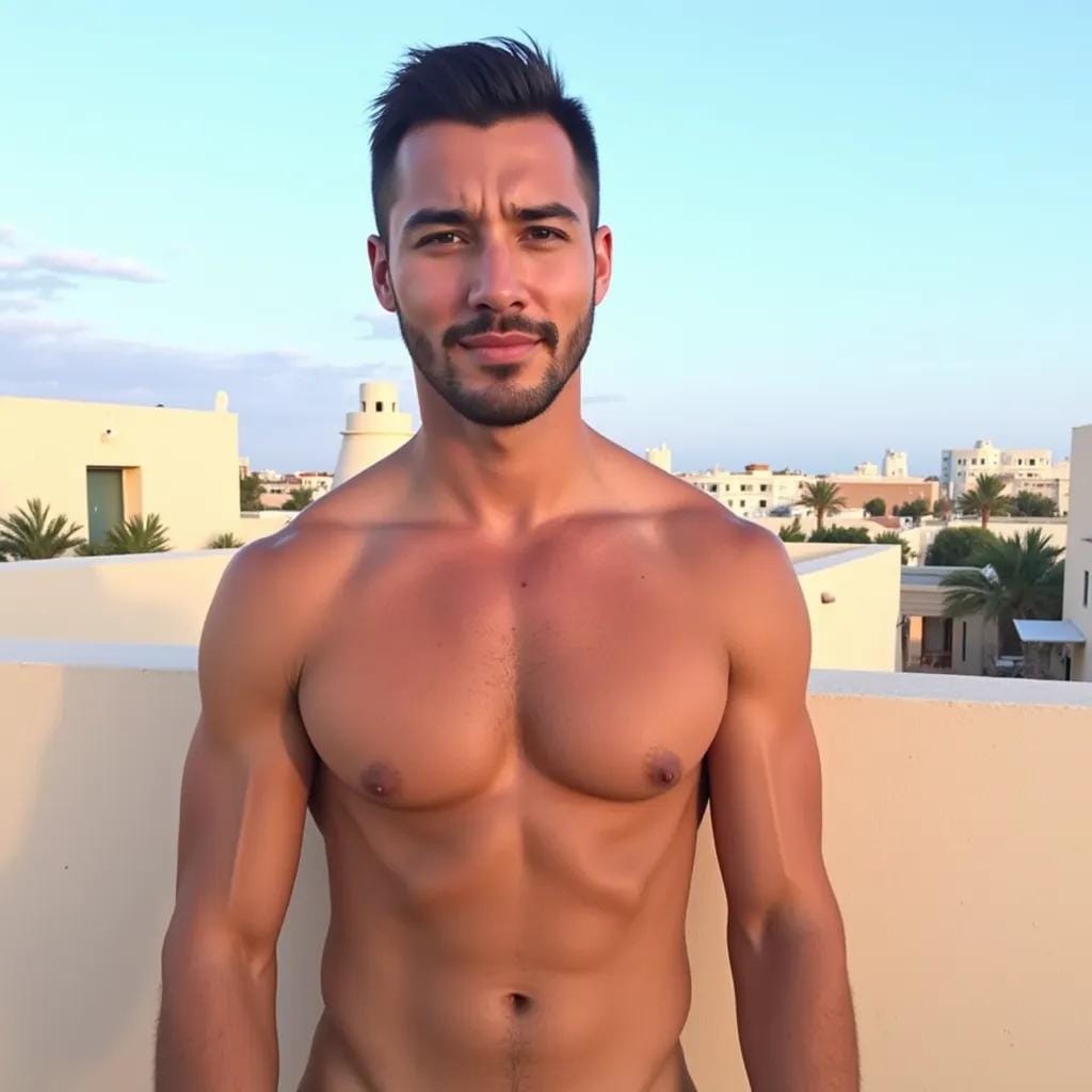 As I stood on the sun-kissed rooftop of the Moroccan riad, gazing out at the endless expanse of turquoise waters, I couldn't help but feel a sense of disdain for the couples milling about below. "Most people deserve each other," I muttered to myself, shaking my head in disgust. But then I saw him - a towering figure with chiseled features and piercing blue eyes, standing at the edge of the pool, his broad shoulders glistening with dew.