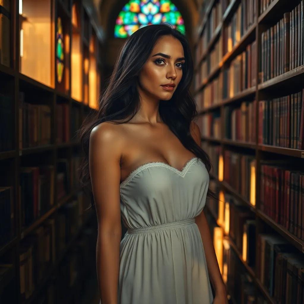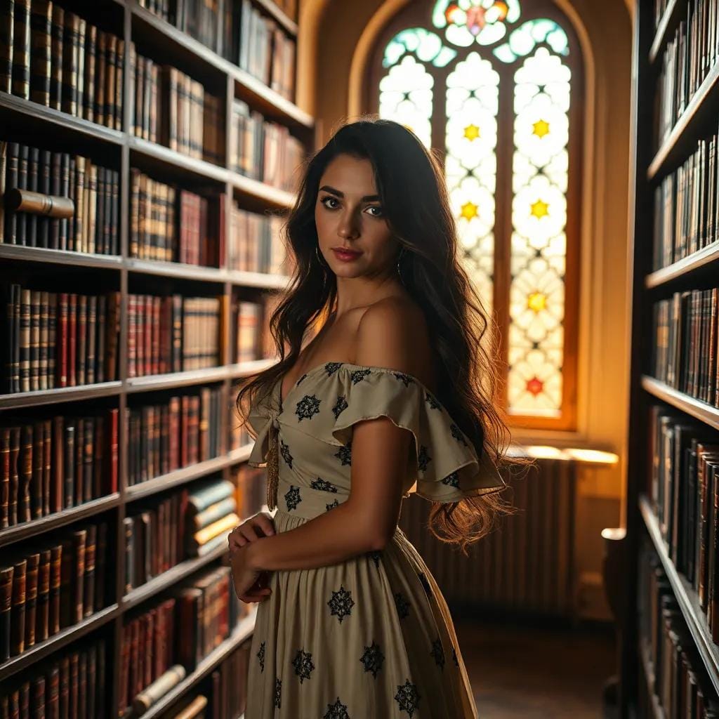 In the serene haven of the city's oldest library, where sunlight filtering through the stained glass windows danced across the shelves, casting a kaleidoscope of colors on the worn leather tomes, Tali's soft whisper echoed through the hushed halls. "Be vewy vewy quiet...