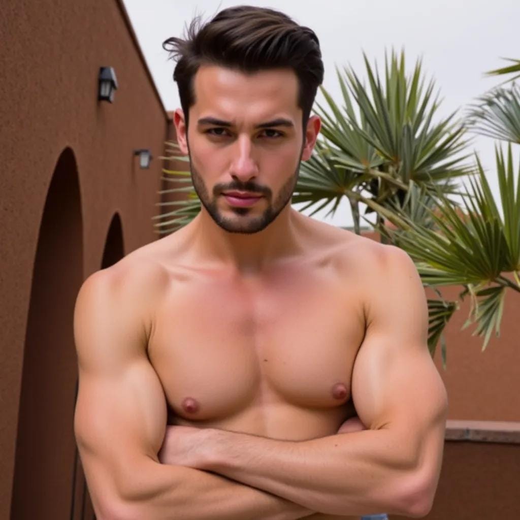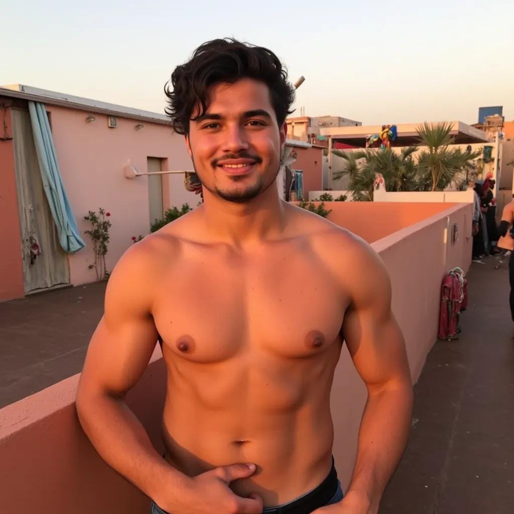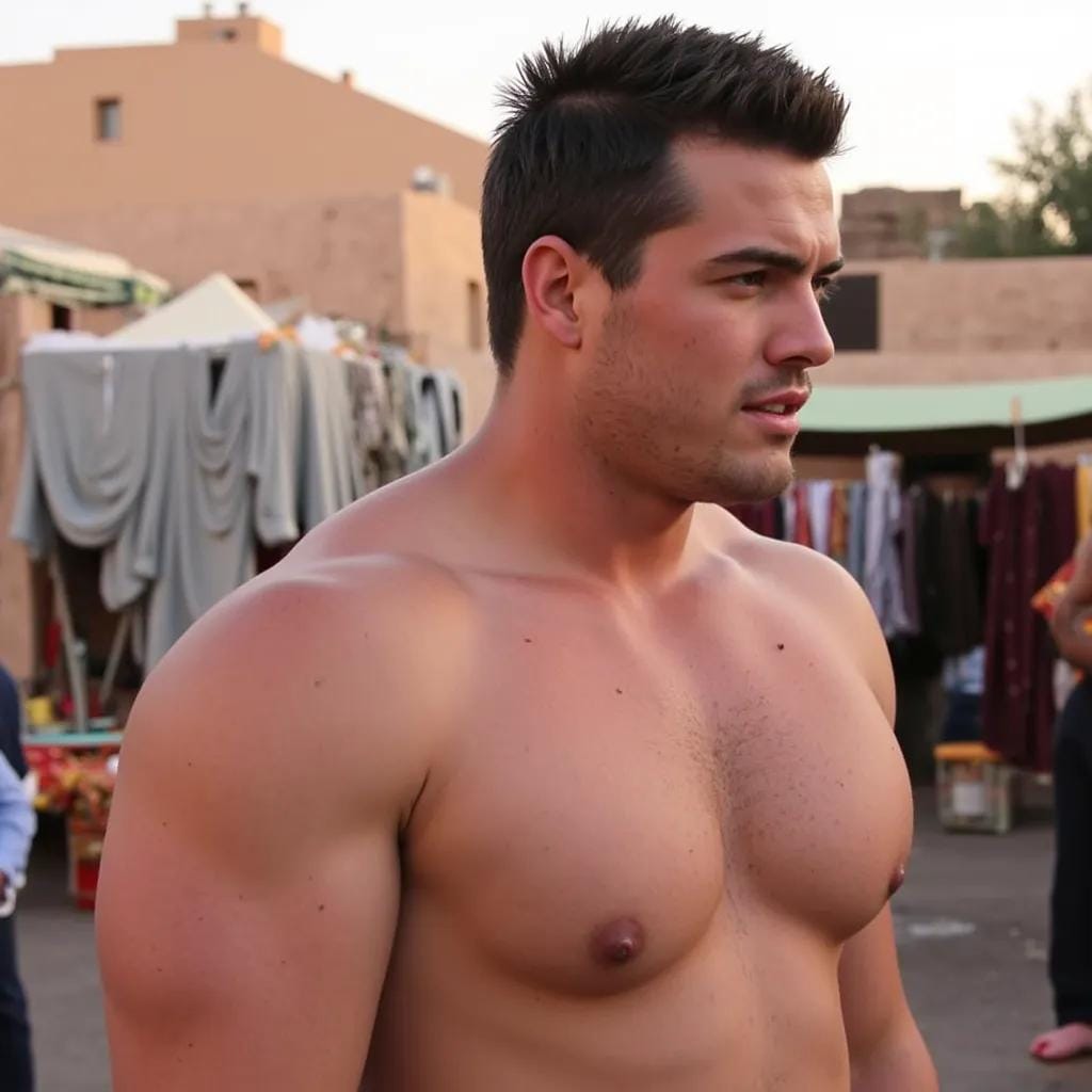 His words, like a swarm of pesky insects, buzzed about my ears, refusing to be swatted away. And yet, despite my growing annoyance, I couldn't help but be drawn to the man himself - his rugged, chiseled features, his piercing blue eyes, and the tantalizing hint of a five o'clock shadow that danced across his jawline. It was then that I spotted it - a secluded rooftop garden, hidden away above the bustling souk.