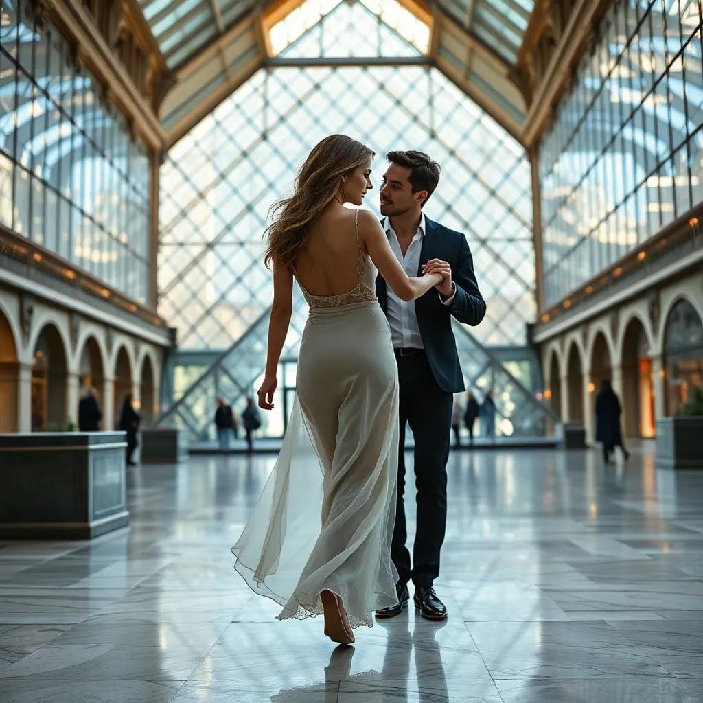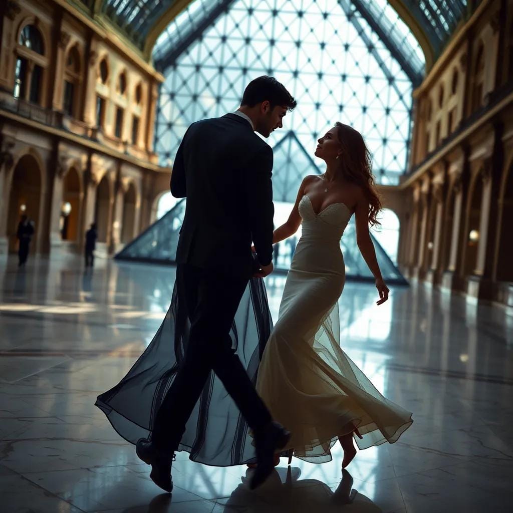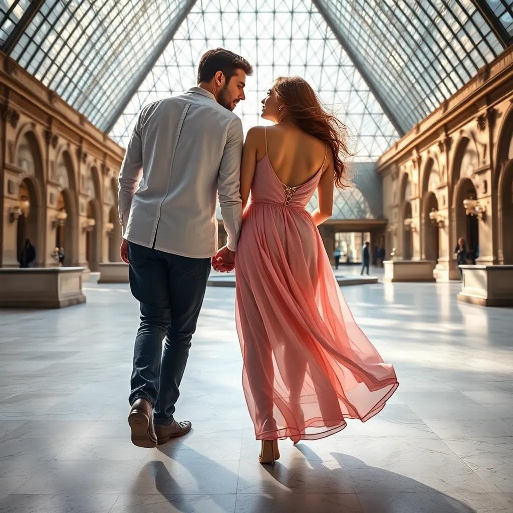 In the rarefied atmosphere of the Louvre's glass pyramid, where sunlight danced across the marble floor, Emma strolled alongside Léon, their footsteps echoing off the walls of the grand museum. They wandered through the galleries, pausing before the Mona Lisa's enigmatic smile, the Scream's anguished cry, and the Venus de Milo's serene beauty.