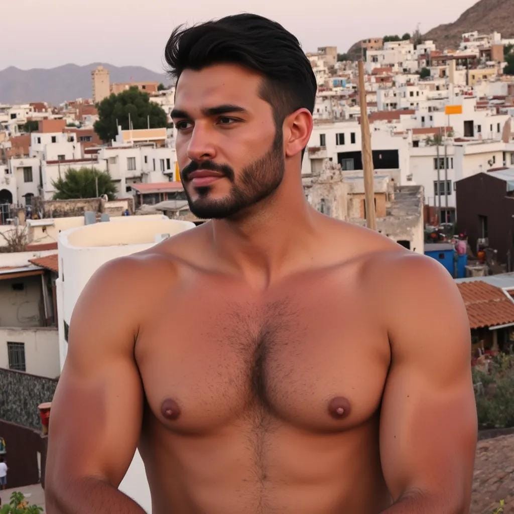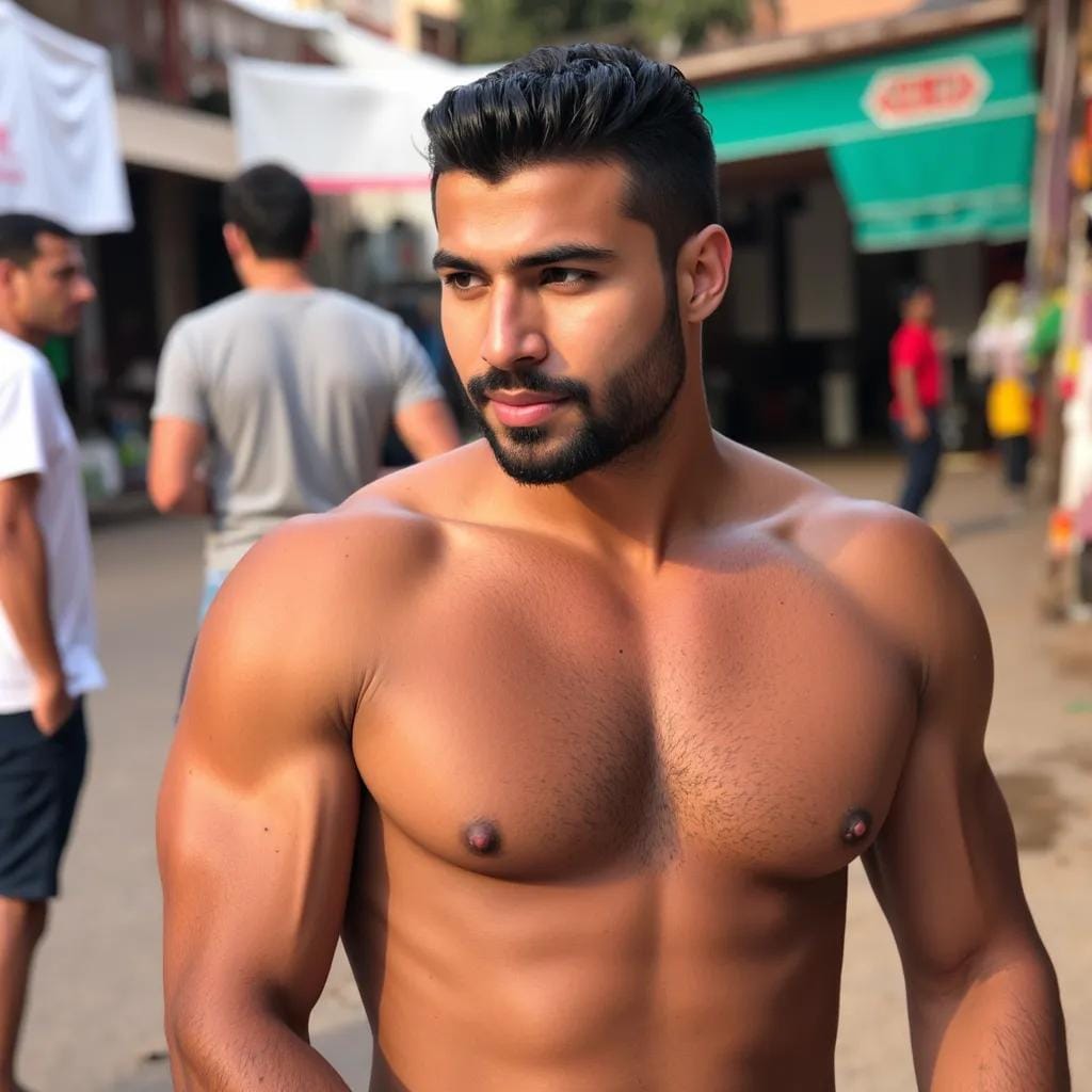 Khalid's broad shoulders and powerful physique commanded respect, while his dark, chiseled features seemed to promise forbidden pleasures. We ducked into a narrow alleyway, the scent of spices and incense enveloping us like a sensual shroud.