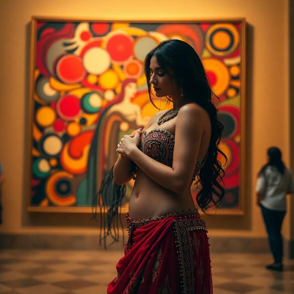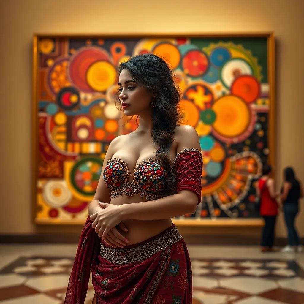 In the hushed, golden light of the museum's grand atrium, Emily stood before a canvas of swirling colors, her eyes drinking in the beauty of Kandinsky's abstract masterpiece. The gentle hum of conversation and the soft rustle of footsteps provided a soothing background melody, as if the art itself had come alive.