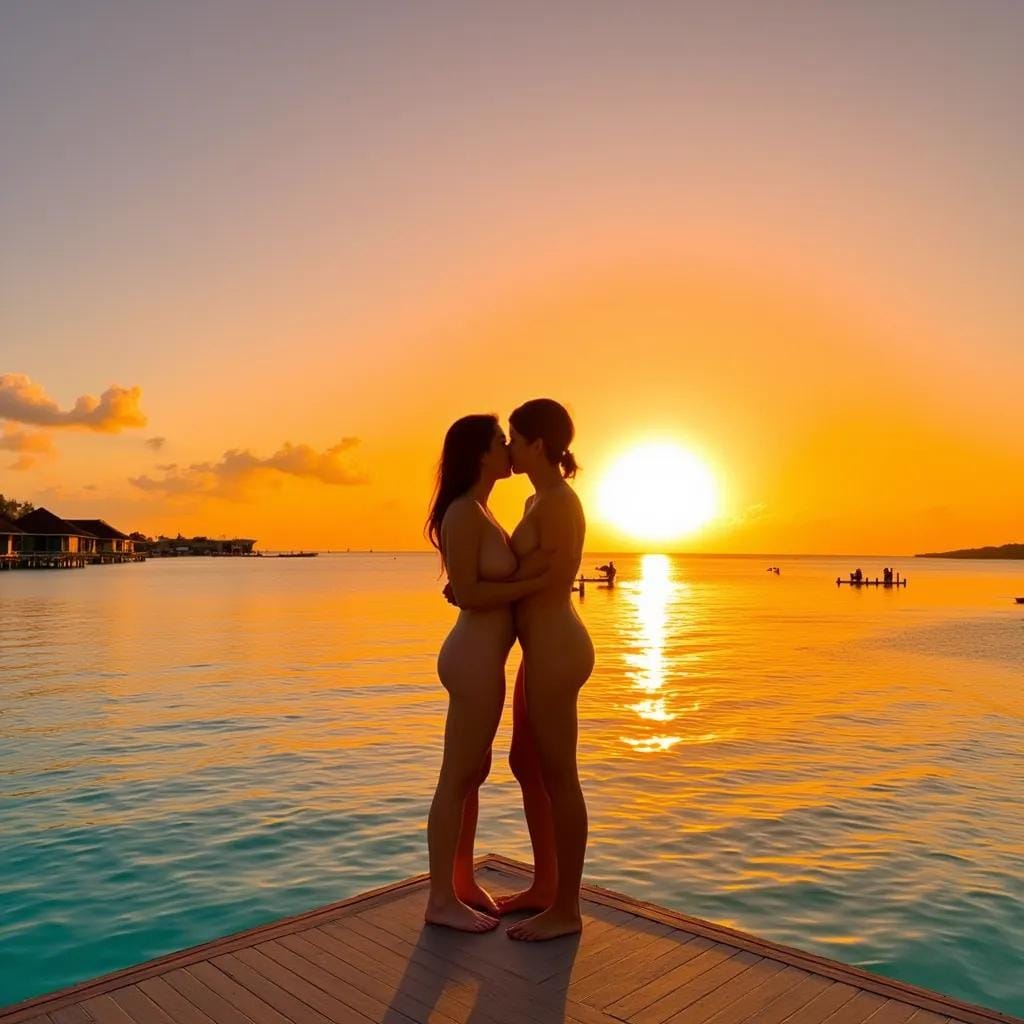 The sun had just begun to set over the crystal-clear waters of Bora Bora, casting a warm orange glow over the overwater bungalow where I stood, completely naked, gazing out at the breathtaking view. My companion, a stunning French woman named Sophie, stood beside me, her slender fingers tracing the curves of my hips as she whispered, "If God had meant for us to be naked, we would have been born that way." I couldn't help but laugh at her witty remark, feeling the warmth of her breath on my skin as she leaned in to kiss my neck.