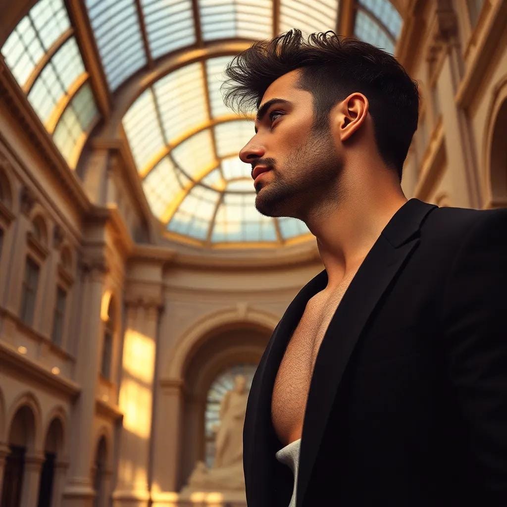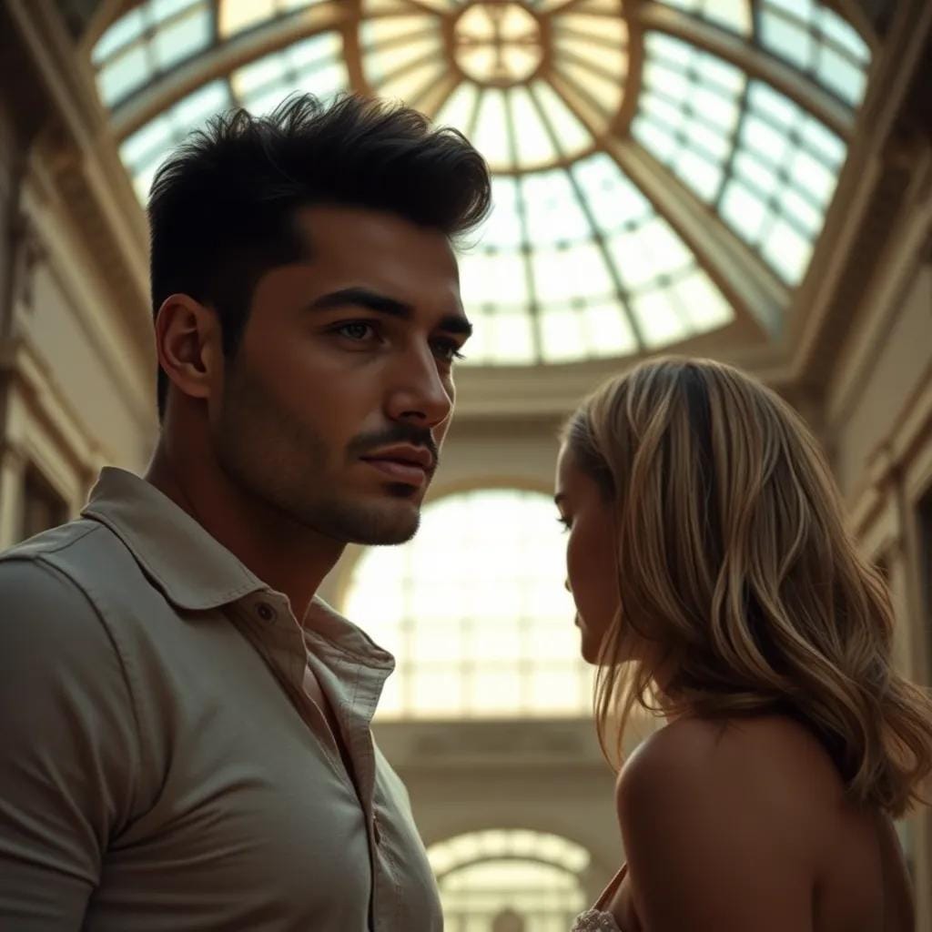In the grand, high-ceilinged atrium of the city's esteemed art museum, where sunlight poured in through the skylight like liquid gold, Emma and Julian found themselves lost in conversation. The soft murmur of the crowd and the gentle hum of the air conditioning created a soothing background melody, allowing their words to dance in the air like delicate brushstrokes on a canvas. As they strolled through the galleries, their footsteps echoed off the marble floor, a rhythmic accompaniment to their discussion.