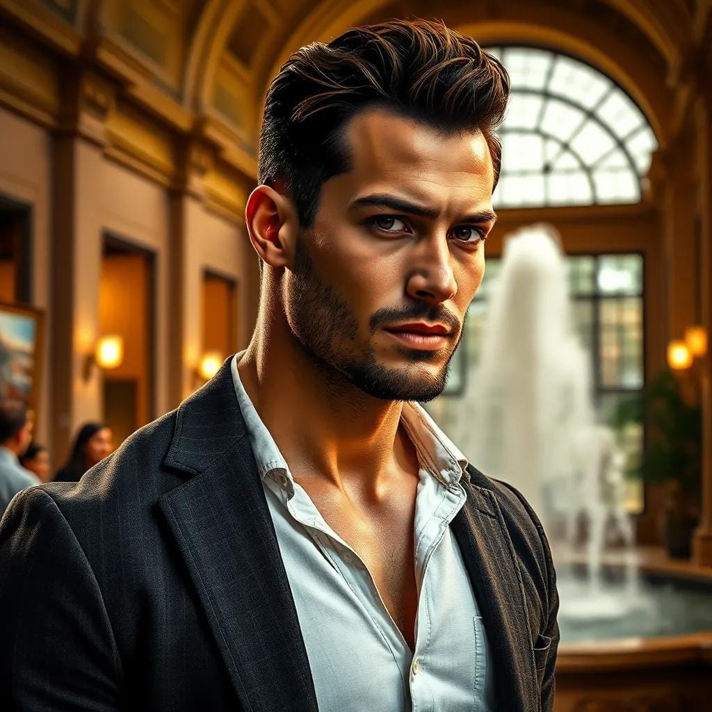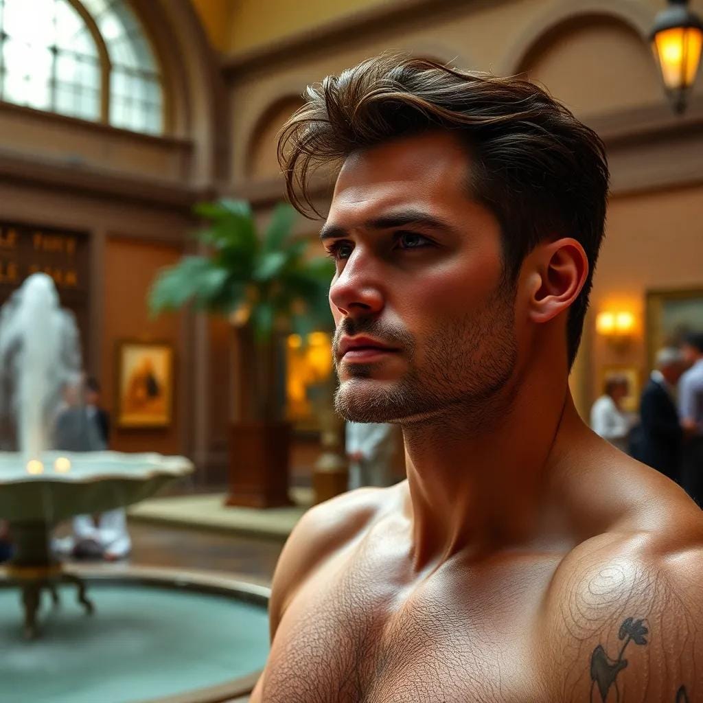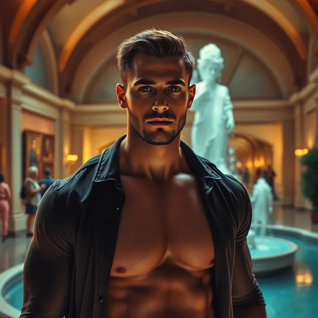 She wandered through the galleries, her eyes drinking in the masterpieces, her soul stirred by the beauty that surrounded her. As she paused before a stunning Monet watercolor, a gentle voice spoke from beside her. "I see you're a fan of the Impressionists." The voice was low and smooth, like honey on warm toast. She turned to find a pair of piercing blue eyes gazing back at her, set in a chiseled face with a strong jawline and a scattering of stubble. A faint smile played on his lips, and she felt a flutter in her chest. "Ah, yes," she replied, her voice barely above a whisper. "I find solace in the way the light dances across the canvas." He nodded, his eyes crinkling at the corners as he smiled.