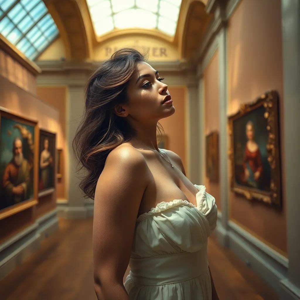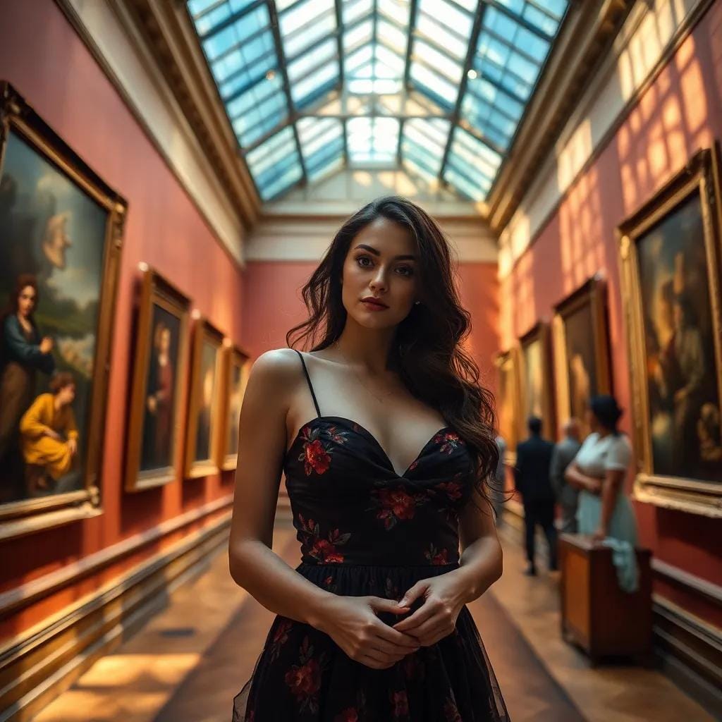 In the rarefied atmosphere of the city's oldest art gallery, where sunlight streaming through the skylight danced across the walls, casting a kaleidoscope of colors on the masterpieces within, Emma found herself lost in the depths of Vincent van Gogh's swirling cosmos. Her fingers trailed along the edge of the frame, as if seeking to grasp the ephemeral essence of the brushstrokes, to capture the very heartbeat of the painting. It was here, amidst the creaking wooden floorboards and the soft hum of hushed conversations, that she first met him – Julian, a man with eyes that seemed to hold the weight of the world, yet sparkled with a quiet intensity, like a star on a clear night.