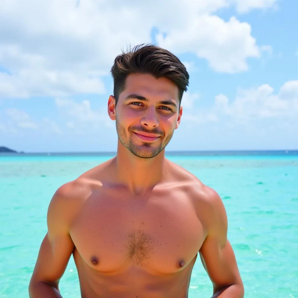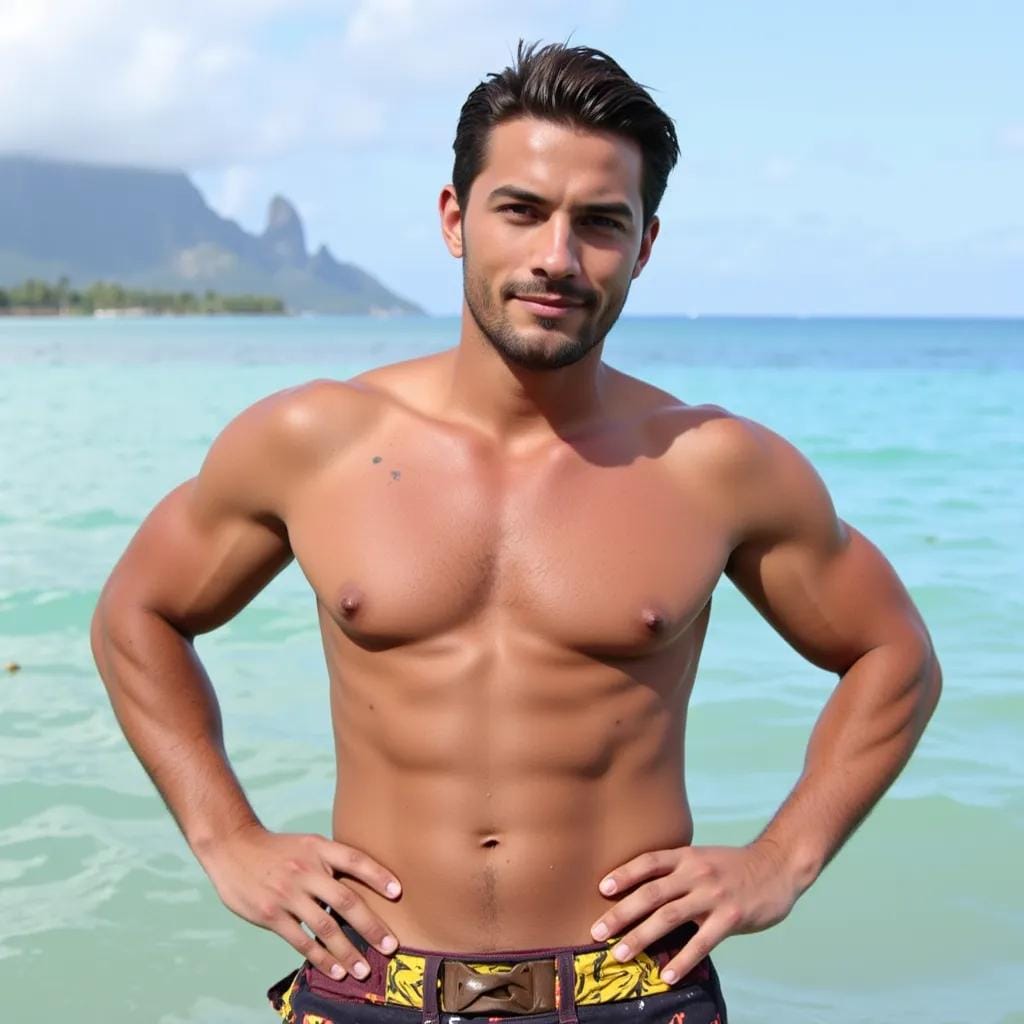 He had heard whispers of a mysterious model, known only as 'The Island Boy,' who possessed a physique that would make the gods weep with envy. As Julian's yacht docked at the island's picturesque harbor, he spotted his subject lounging on the beach, his bronzed skin glistening in the warm sunlight.