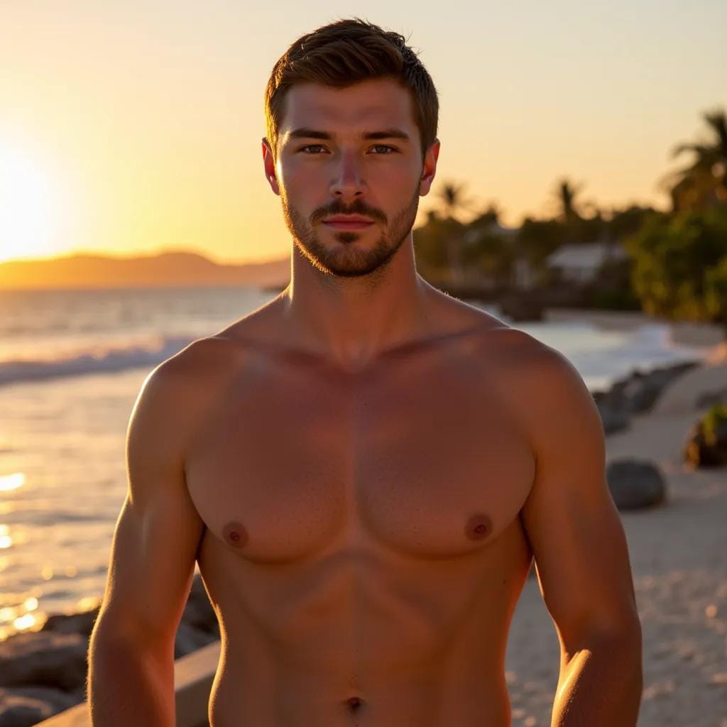 In the sultry twilight of a Caribbean island, where the air was alive with the sweet scent of blooming hibiscus, Jack stood tall, his chiseled physique bronzed to perfection by the golden sun. His rugged jawline was accentuated by the sharp angles of his cheekbones, and his piercing blue eyes seemed to gleam with a fierce intensity as he gazed out at the turquoise sea. "America: born free and taxed to death," he muttered to himself, the words a wry commentary on the country that had given him his freedom, but also the crippling debt that weighed him down. As he stood there, lost in thought, a soft voice whispered in his ear, "Welcome to the island of the gods." It was a woman, her raven hair cascading down her back like a waterfall of night, her skin a radiant golden brown from hours spent basking in the sun.