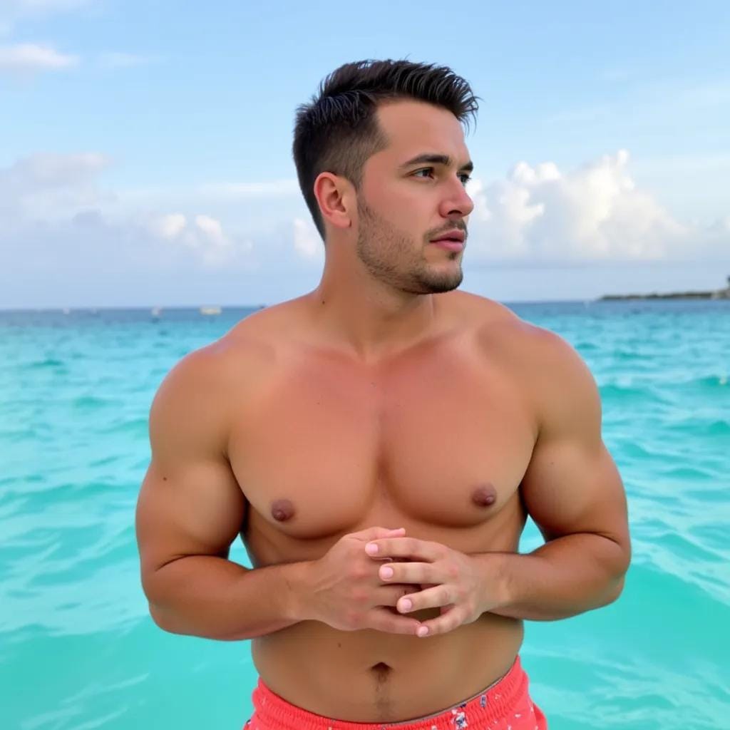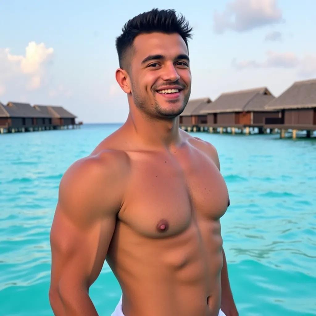 As the warm breeze danced across the turquoise waters of Bora Bora, Jack stood at the edge of his luxurious overwater bungalow, his rugged physique glistening in the fading light. His eyes, a deep shade of blue, seemed to pierce the soul as he recited the ancient prayer, "God grant us the serenity to accept the things we cannot change, courage to change the things we can, and wisdom to know the difference." His words hung in the air, a poignant reminder of the fragility of life. It was then that he felt her presence, a gentle touch on his shoulder, a soft whisper in his ear.