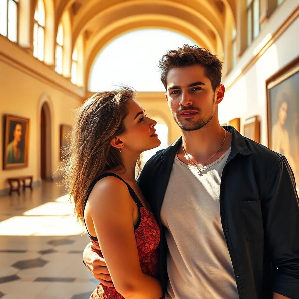 In the heart of the city, where art and literature converged, Emily and Ryan found themselves lost in the labyrinthine corridors of the grand art gallery. The afternoon sun cast a warm glow through the floor-to-ceiling windows, illuminating the masterpieces on display.