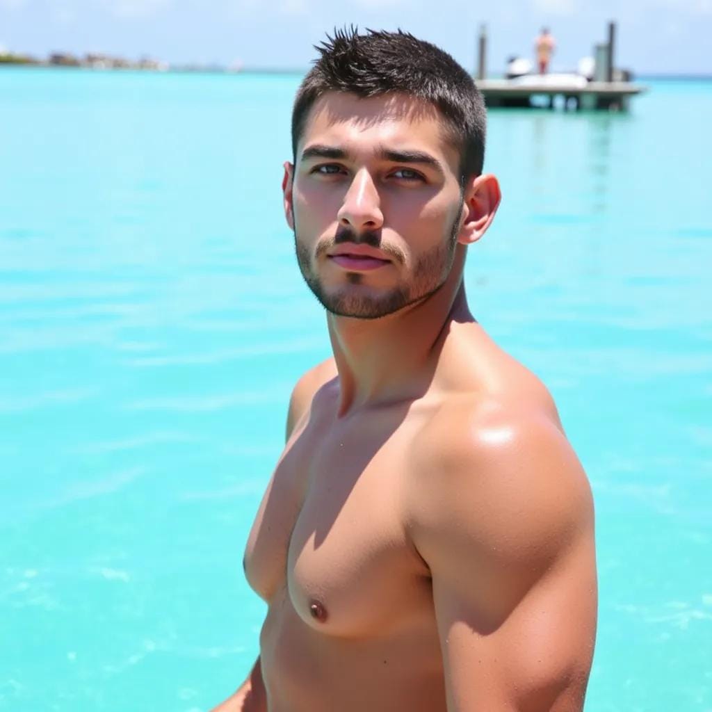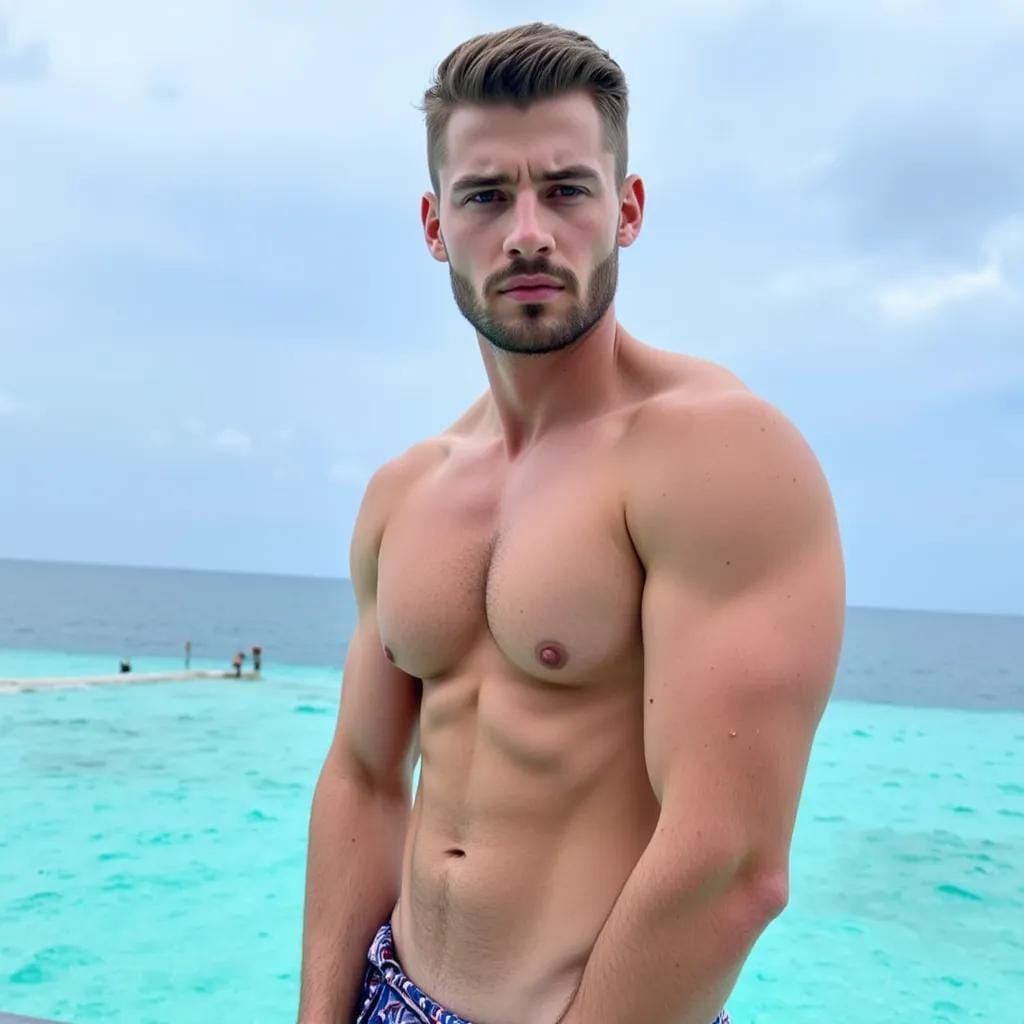 From Concentrate. As I stood at the edge of the infinity pool, gazing out at the turquoise waters of the Maldives, I felt a presence behind me. I turned to find myself face to face with a vision of masculinity, his chiseled features illuminated by the warm glow of the setting sun.