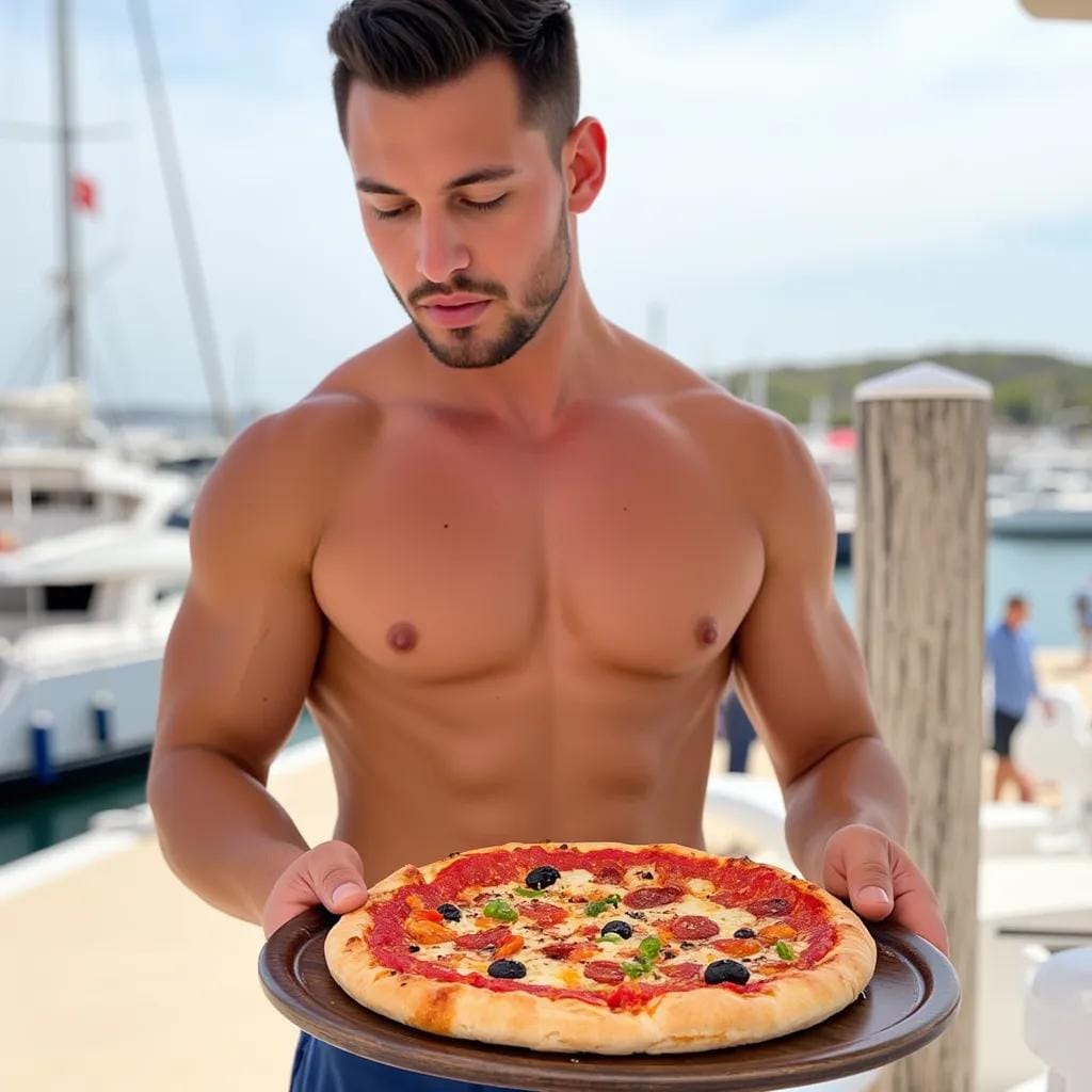 This PIZZA symbolizes my COMPLETE EMOTIONAL RECOVERY!! As I stepped off the yacht and onto the sun-kissed deck of the luxurious villa, the warm Mediterranean breeze caressed my skin, carrying the sweet scent of blooming jasmine and the distant tang of saltwater. I had escaped to the Greek isles, seeking solace from the wounds of a recent heartbreak.