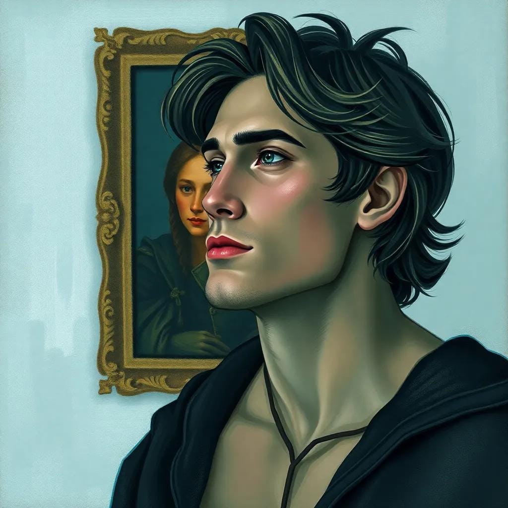 In the hushed halls of the museum, where the soft glow of candelabras danced across the faces of the artworks, Emma found herself lost in the contemplative gaze of a Renaissance masterpiece. The painting's subjects, entwined in a tender, melancholic kiss, seemed to whisper secrets to one another, their love a poignant, timeless lament.