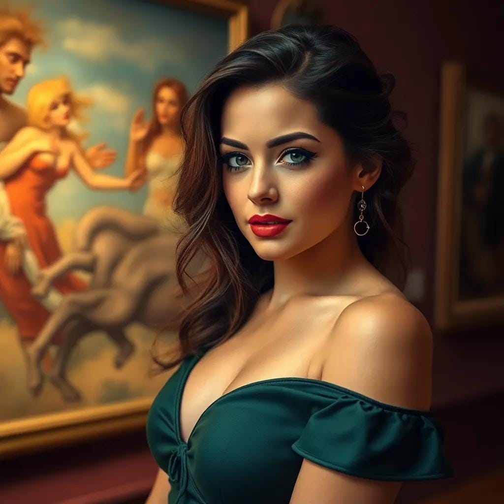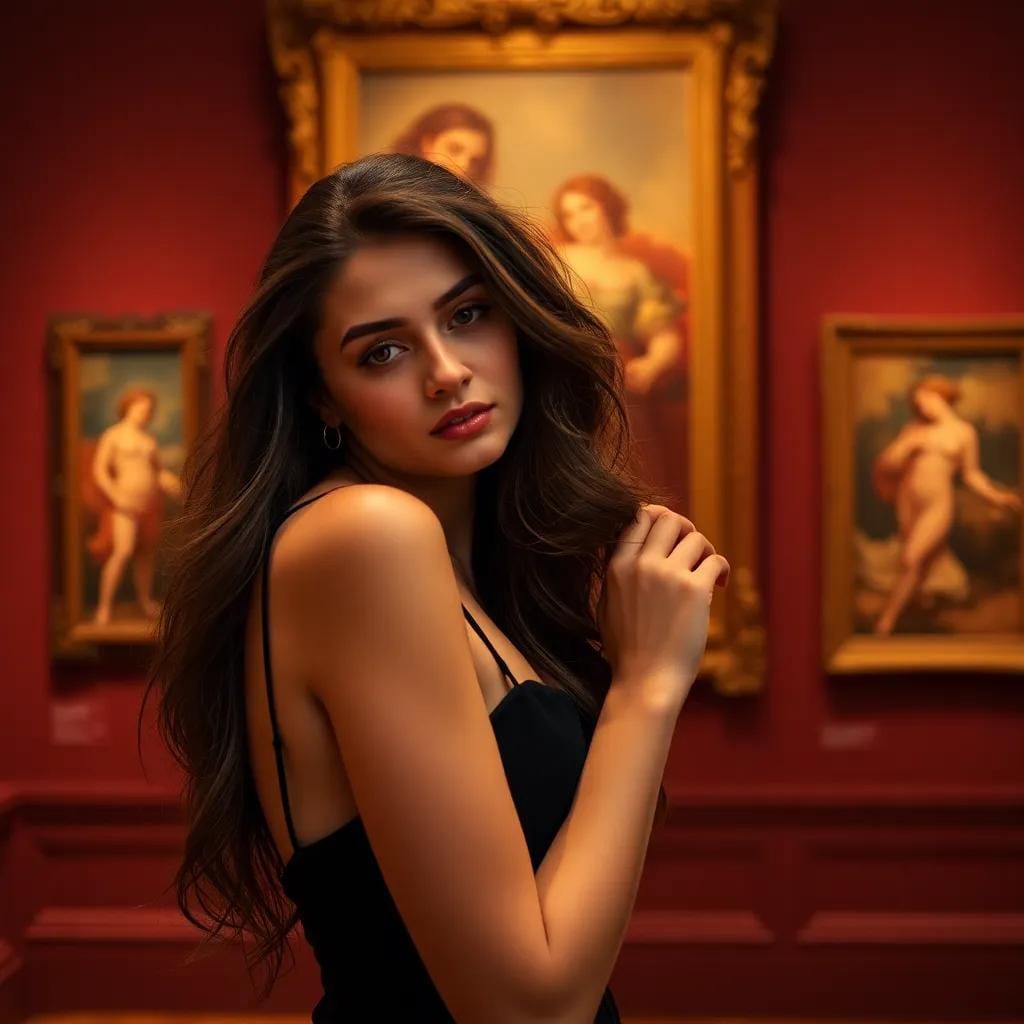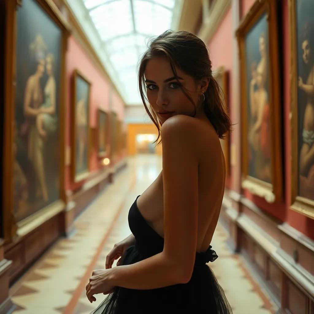It's been Monday all week today. As she wandered through the hallowed halls of the city's premier art gallery, Lena's gaze drifted over the masterpieces on display, each one a testament to the human experience. The soft hum of conversation and the gentle rustle of silk-clad patrons created a soothing background melody, one that harmonized with the gentle thrum of her own heartbeat.