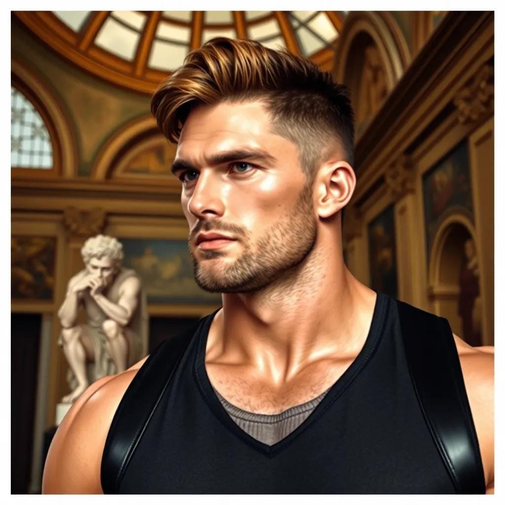 It was amidst this subtle shift in cultural tides that Sophie first laid eyes on him – a gentle giant, with eyes that seemed to hold the secrets of the ages. He stood before a majestic painting by Delacroix, his gaze lost in the swirling colors and the turbulent drama of the scene. Sophie watched, entranced, as he seemed to breathe life into the canvas, his very presence imbuing the artwork with a depth and richness that was almost palpable. She felt a shiver run down her spine as he turned, his eyes meeting hers with a warmth that was both unexpected and reassuring. "Ah, 'Liberty Leading the People,'" he murmured, his voice low and melodious, as if the very sound of his words was a gentle breeze rustling the leaves of a summer garden. "I've always been drawn to the way Delacroix captures the essence of revolution – the chaos, the uncertainty, the thrill of the unknown." Sophie found herself drawn into the vortex of his words, her feet moving of their own accord as she drifted closer to the painting.