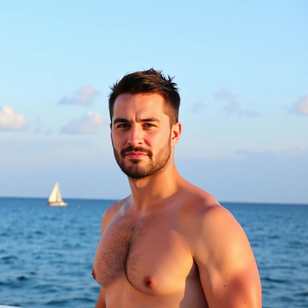 "Leave him alone," it read. "He's mine, and you'll never have him." I raised my eyes to meet the gaze of the man who had written those words - the one I had grown to love, the one I had come to realize I couldn't live without. His eyes, a deep, piercing blue, seemed to bore into my very soul, his jawline chiseled and strong, his lips curled into a subtle, enigmatic smile. I felt a shiver run down my spine as he stepped closer, his broad shoulders towering over me, his chest a chiseled expanse of muscle and skin. I raised my hand, my fingers brushing against the rough fabric of his shirt, feeling the heat of his body beneath. "You think you can threaten me?" I whispered, my voice barely audible over the lapping of the waves against the hull.