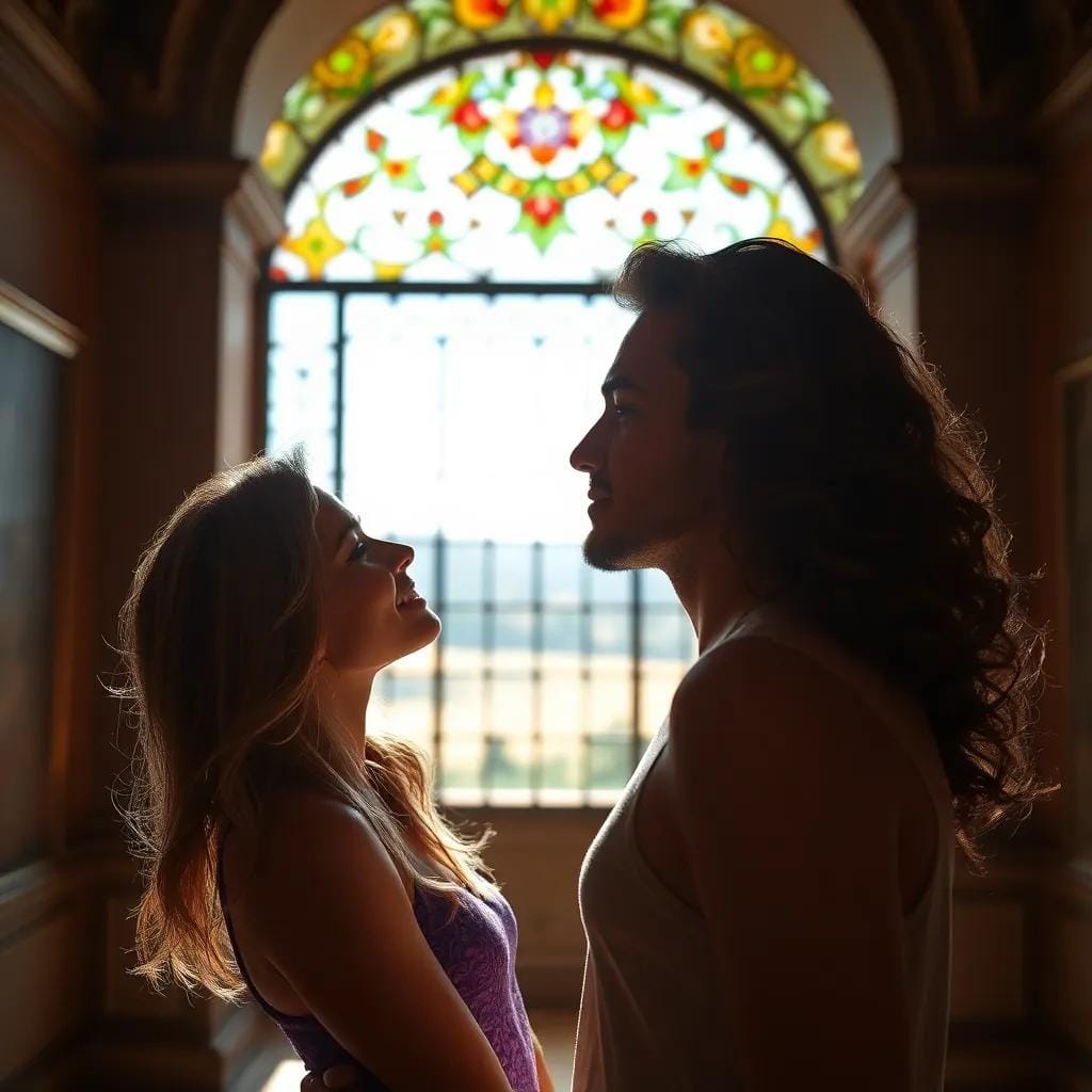 In the tranquil atmosphere of the city's oldest art gallery, where sunlight filtered through the stained glass ceiling and danced across the walls, Emily and James found themselves lost in conversation. The exhibition, a collection of Impressionist masterpieces, seemed to recede into the background as they delved into the depths of human existence. As they stood before a Monet water lily painting, Emily's eyes sparkled with a mixture of wonder and melancholy.