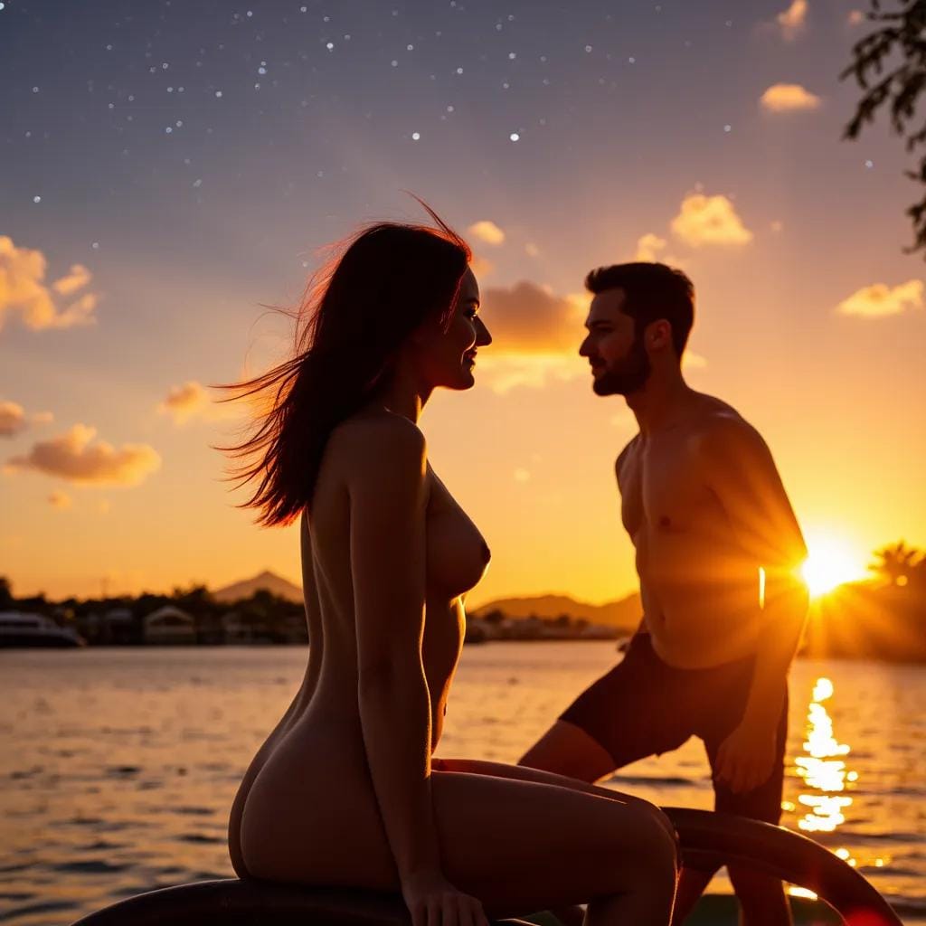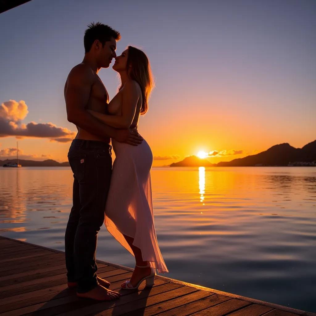 As the warm, golden light of sunset danced across the tranquil waters of Bora Bora, *woot* smiled serenely, her eyes locked onto the majestic form of her lover, knightbrd, standing poised at the helm of their luxurious yacht. The salty sea air caressed her skin, carrying the sweet scent of blooming hibiscus as she descended the staircase, her slender figure draped in a flowing white gown that seemed to shimmer in the fading light. "Ah, my love," knightbrd's deep voice rumbled, his eyes never leaving hers as he reached out to guide her to the deck.