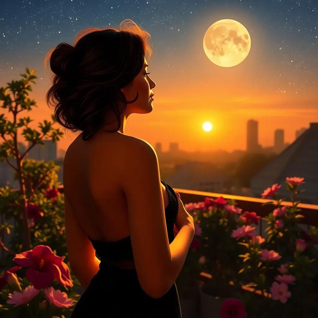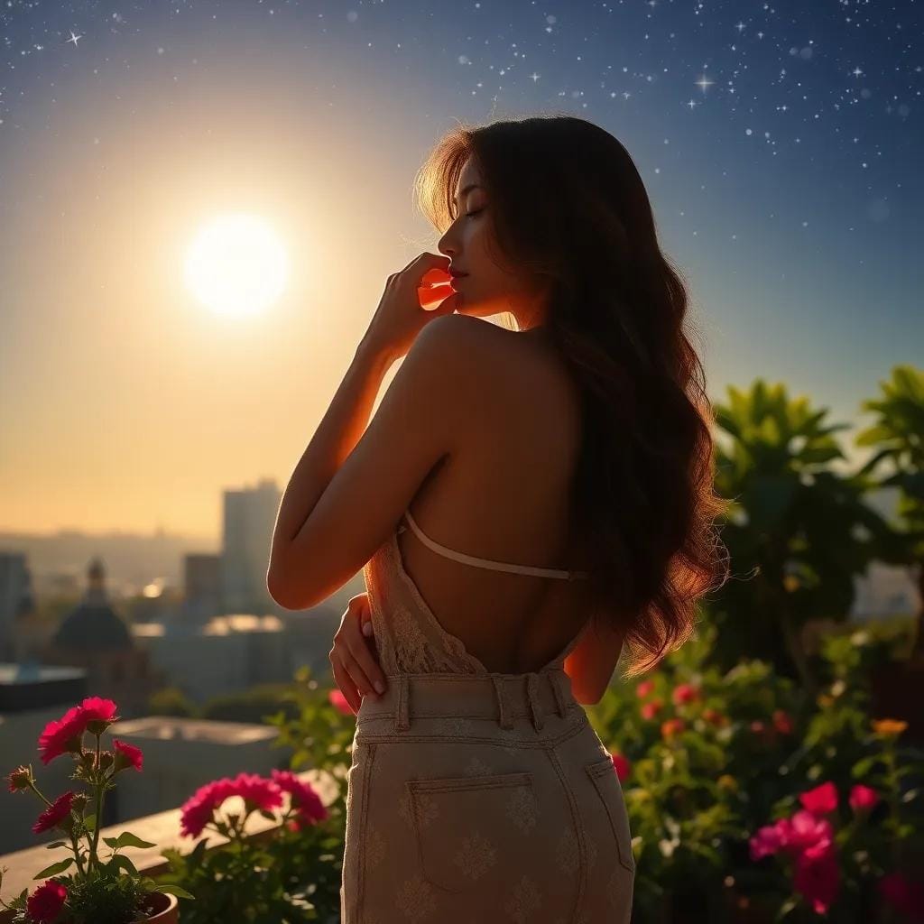 "It's breathtaking. The way the light catches the curves, it's like it's alive." As they stood there, lost in the beauty of the sculpture, Sonny felt a deep connection to Emma. It was as if their souls were speaking to each other, understanding the unspoken language of art and appreciation. Their stroll continued, taking them to a cozy cafe nearby, where they settled into a quiet corner, surrounded by the musty scent of old books and the soft glow of table lamps. Over steaming cups of coffee, they delved into a deep conversation, their words flowing like a gentle stream. As the sun dipped below the horizon, casting a warm orange glow over the city, Sonny and Emma found themselves at the rooftop garden once more, this time with a picnic basket in hand.