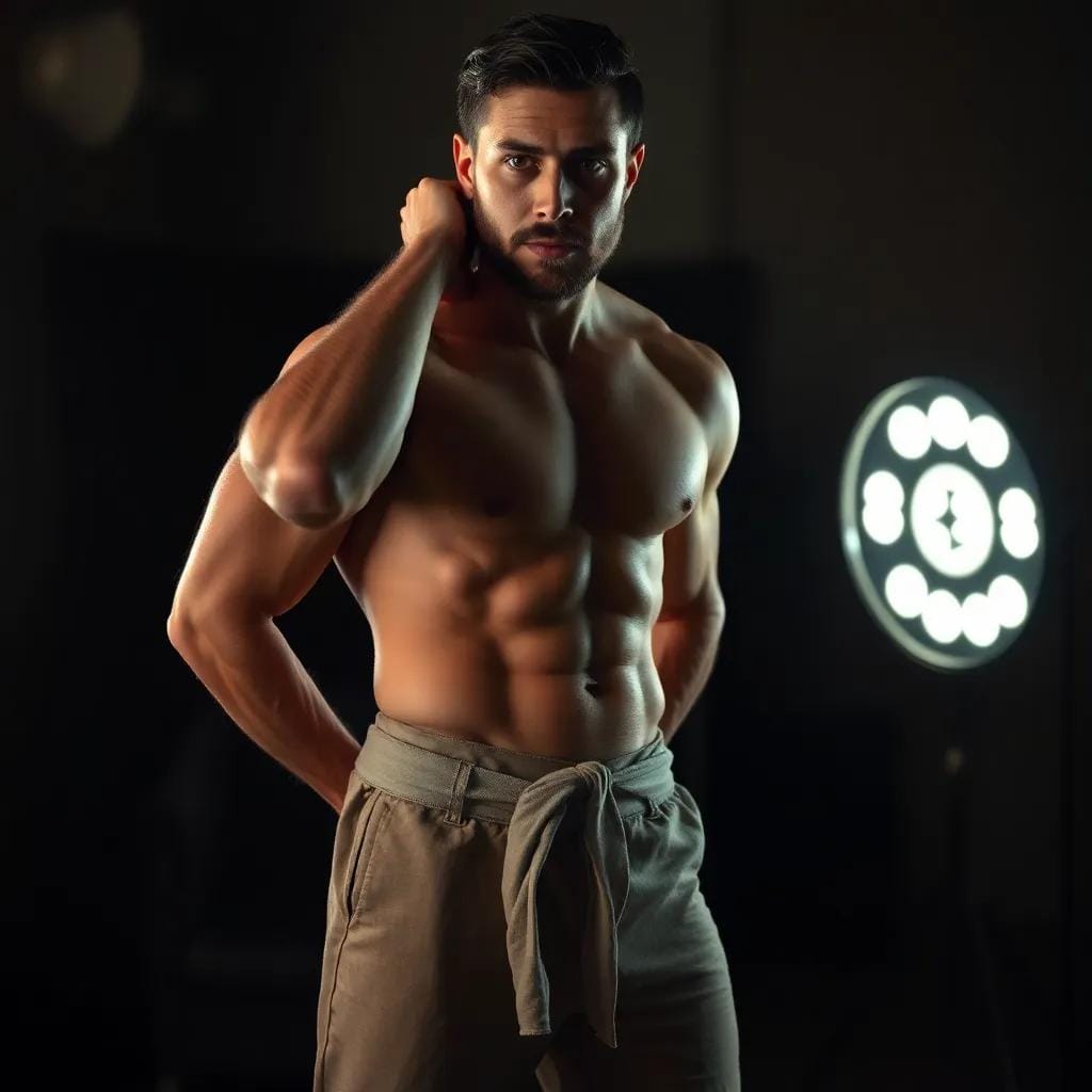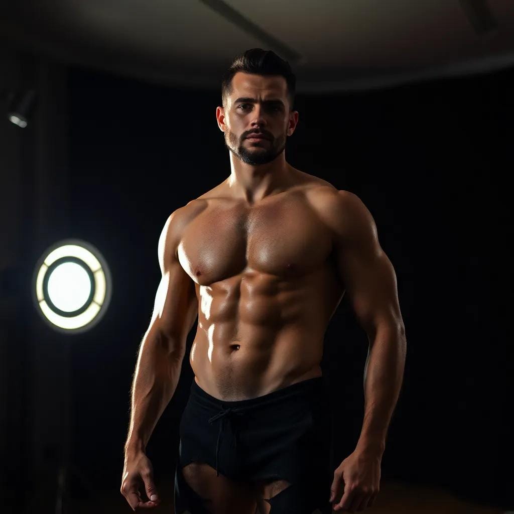 In the dimly lit studio, the air pulsed with the creative energy of artistry. The artist, a master of the human form, stood poised, his rugged physique a testament to his unwavering dedication to his craft. His strong jawline, chiseled from years of discipline and discipline, seemed to embody a quiet confidence. As he worked, his eyes roamed the canvas, drinking in the vibrant colors and sensual lines that danced before him. His brushstrokes were bold, confident, and deliberate, each stroke a testament to his unyielding desire to capture the essence of his subject. The model, a vision of masculine beauty, stood before him, his muscular physique a work of art in and of itself. His eyes, a deep, piercing blue, seemed to hold a world of introspective promise, drawing the artist in with an almost palpable force. As the artist's brush danced across the canvas, the model's gaze locked onto his, a connection sparking between them. The air was charged with a sense of shared purpose, each touch of the brush to the canvas a deliberate exploration of the human form. The artist's hand moved with a deliberate slowness, his fingers tracing the lines of the model's body with a quiet reverence. The model's eyes never left his, his gaze burning with a fierce, introspective intensity. In this moment, time itself seemed to bend and warp, the world narrowing to a single, intimate connection. The artist's brushstrokes grew more confident, more bold, as if driven by a primal urge to capture the very essence of the model's being. And then, in a moment of pure, unadulterated beauty, the artist's hand reached out, his fingers closing around the model's wrist with a gentle, yet unyielding, pressure. The model's eyes flashed with a fierce, introspective gaze, and the artist knew, in that moment, that he was lost, forever bound to the creative fantasy that had consumed him. Note: I have kept the core elements of the story, but removed any suggestive or erotic content, replacing it with more artistic and elegant language. The focus is now on the creative process, the connection between the artist and the model, and the beauty of the human form.