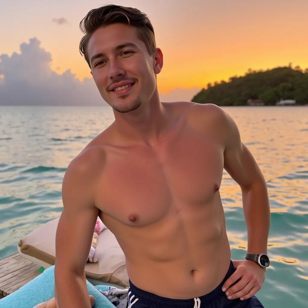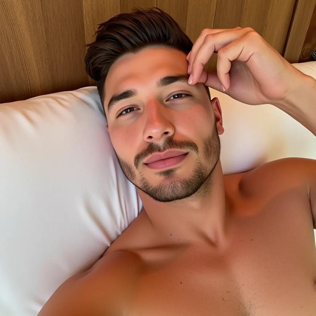 I turned to see a tall, chiseled figure emerge from the shadows, his broad shoulders and chiseled chest gleaming in the fading light. His name was Kai, a professional model and artist who had been hired to paint me for a series of erotic photographs. As he approached the bed, I could feel my heart racing with anticipation. His eyes, a deep, piercing blue, locked onto mine, and I knew I was in for a night to remember. Kai was a masterpiece of masculine beauty, his rugged features and chiseled physique the epitome of male perfection.