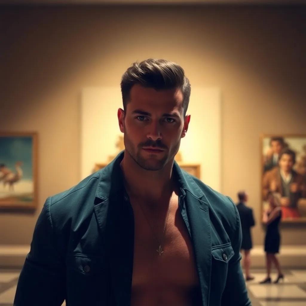 "It's as if the artist has captured the very essence of the night itself." I nodded in agreement, my heart beating in time with hers. We stood there for a moment, lost in the beauty of the painting, the world around us melting away. It was then that I realized I had been holding my breath, and with a gentle laugh, I let it out, feeling the tension release from my shoulders. My companion's eyes crinkled at the corners as she smiled, and I knew in that instant that I was falling for her. As the evening drew to a close, we decided to adjourn to a nearby rooftop garden, where the stars twinkled like diamonds scattered across the velvet expanse of the night sky.