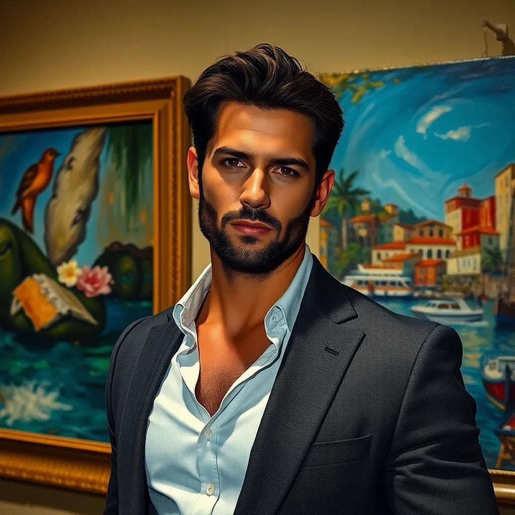 He saw only the man before him, with his worn coat and scuffed shoes, and the longing in his eyes. Something within Reginald stirred, a spark of connection that he couldn't quite explain. "Actually," Reginald said, a small smile playing on his lips, "I think I can spare more than that." He reached into his pocket and produced a crisp twenty-dollar bill, along with a few more, which he pressed into the beggar's palm. "Why don't you treat yourself to a drink, and I'll join you? We can discuss the merits of this piece," he said, nodding toward the canvas. The beggar's eyes widened in surprise, and for a moment, Reginald wondered if he'd misjudged the situation entirely.