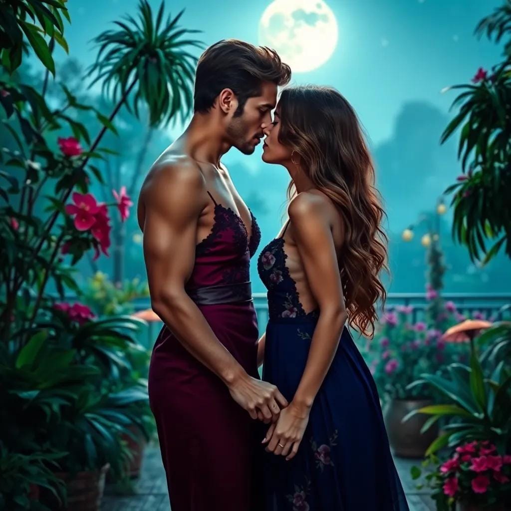 As Julian finished, she reached out and gently touched his hand, her fingers intertwining with his in a gentle caress. Their evening continued, a gentle dance of words and emotions, as they strolled through the garden, the stars beginning to twinkle above. They found a secluded spot, where a bench overlooked the city, and Julian pulled Emma close, his arms wrapping around her like a warm blanket.
