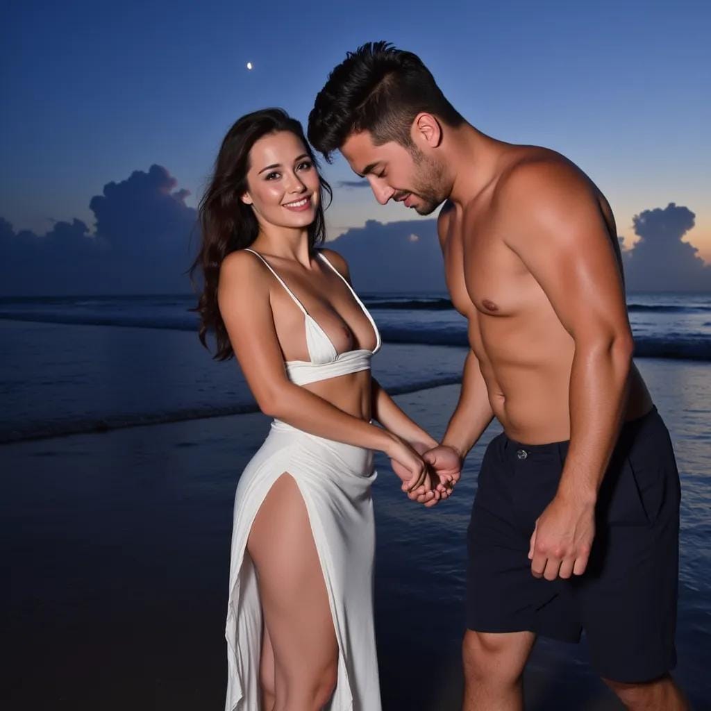 Marco's eyes never left Alessia's face as she slipped off her sarong, revealing a body that seemed to glow in the moonlight. With a gentle touch, Marco guided Alessia to the water's edge. The waves lapped at their feet, a sensual caress that seemed to awaken the desires of their very souls.