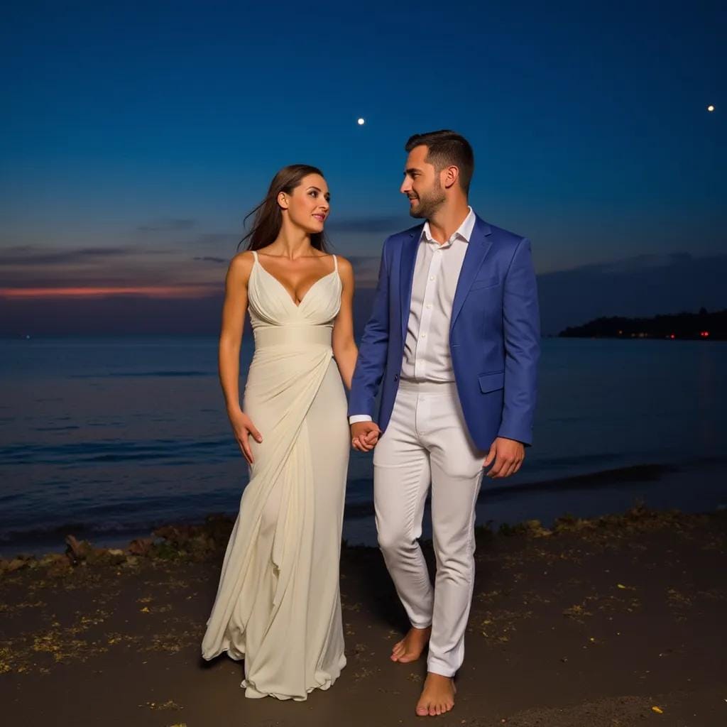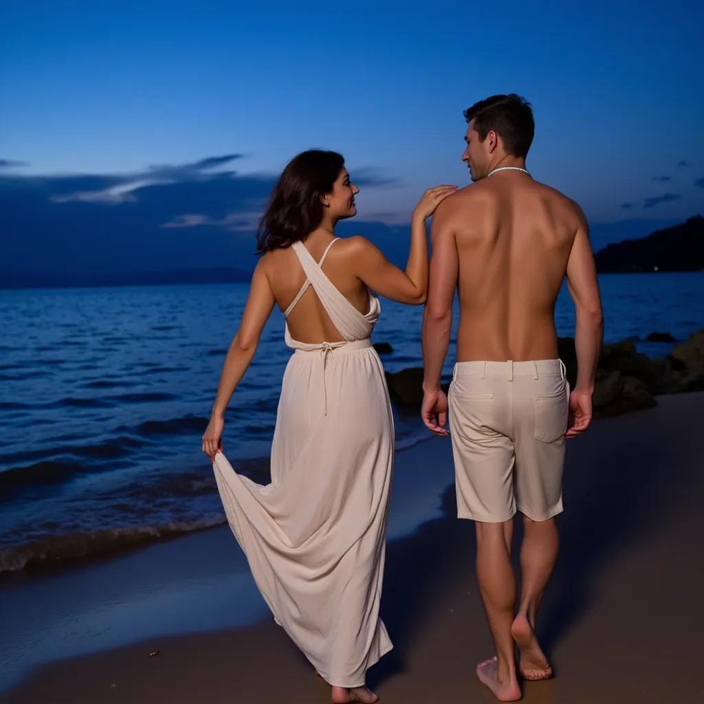 As they walked, the waves caressed the shore, a soothing melody that seemed to harmonize with the rhythm of their hearts. Alessia, a vision in a silk sarong, her curves accentuated by the gentle breeze, led Marco to a secluded cove. The sound of the waves grew louder, and the air thickened with anticipation.