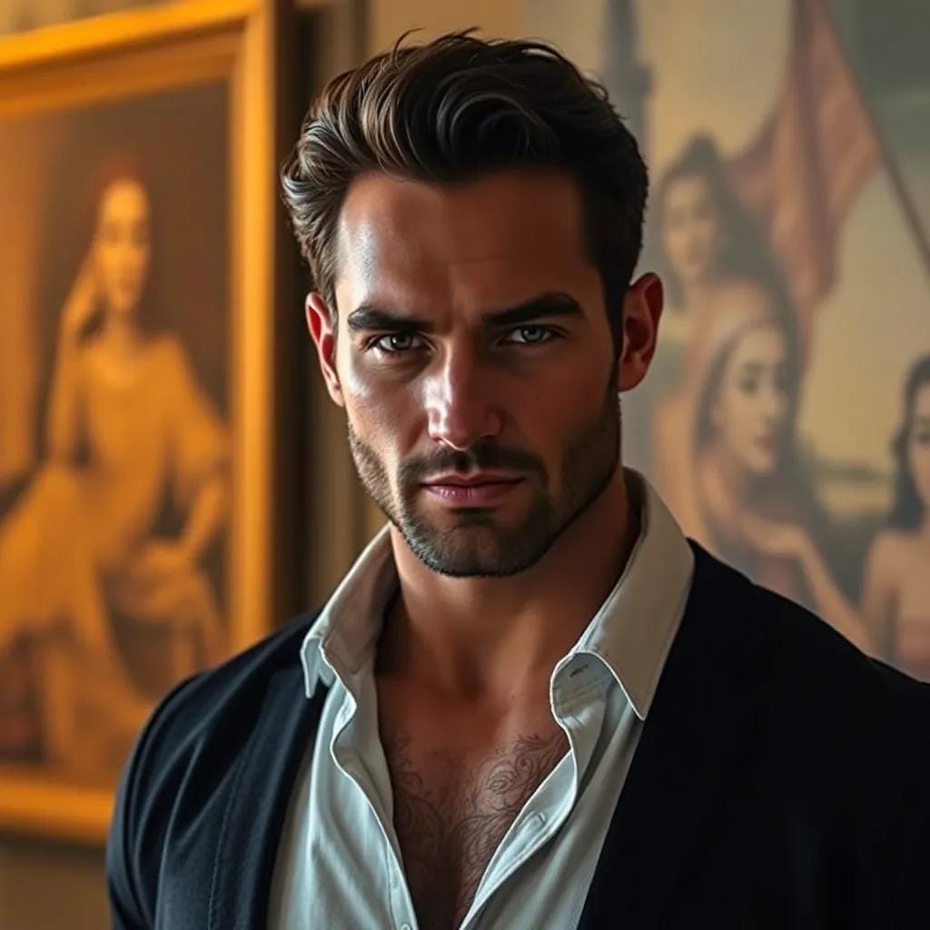 In the hushed, golden light of the art gallery, where masterpieces whispered secrets to the walls, Emma found herself lost in the gaze of a stranger. His eyes, like polished onyx, shone with a quiet intensity as he stood before a canvas of swirling blues and greens, his fingers tracing the contours of a forgotten era.