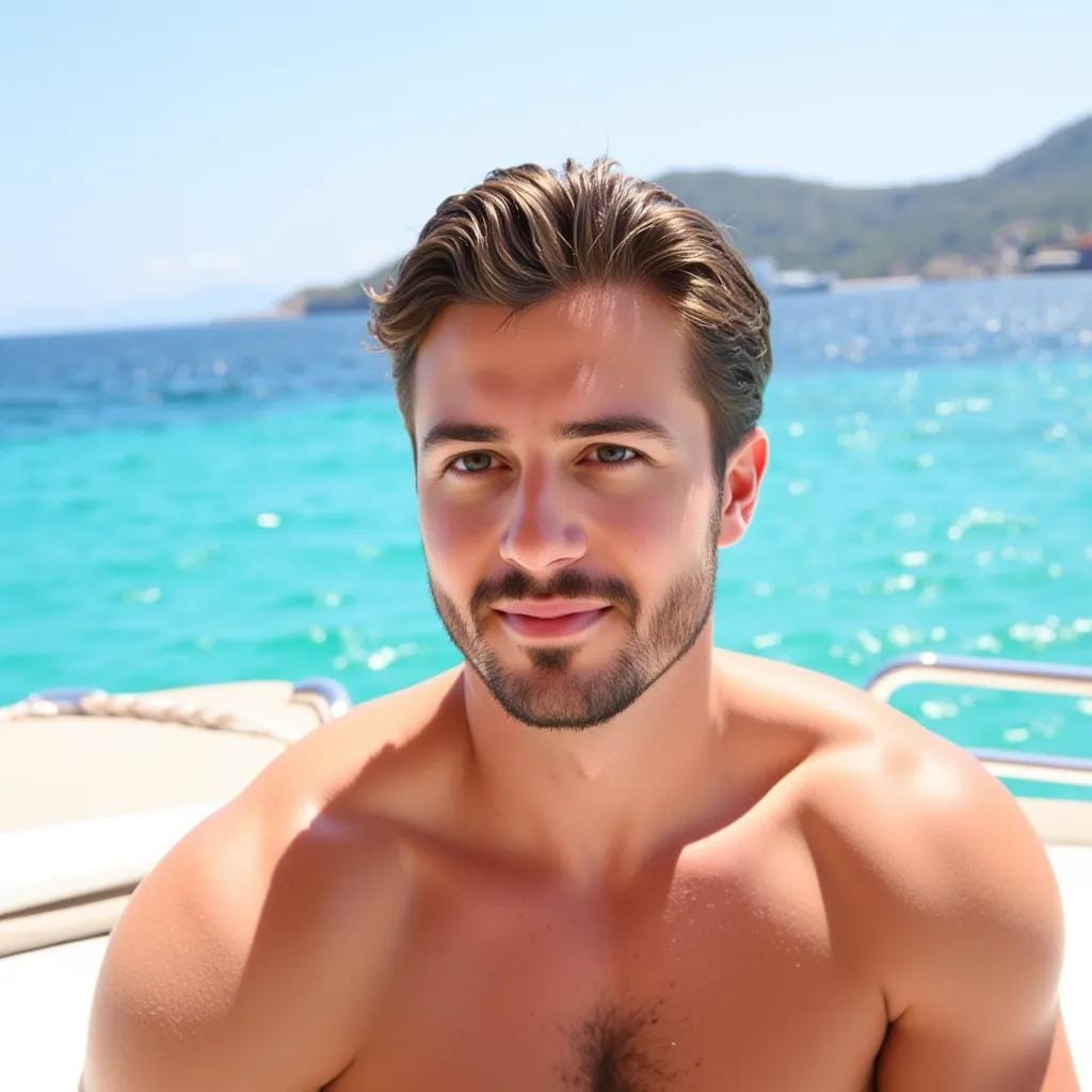 Writing software is more fun than working, thought Lucas, as he lounged on the sun-kissed deck of his luxurious yacht, the warm breeze rustling his chiseled features. The turquoise waters of the Mediterranean lapped gently against the hull, a soothing melody that accompanied the gentle rocking of the boat. As he gazed out at the endless expanse of blue, his eyes locked onto a figure emerging from the cabin below.