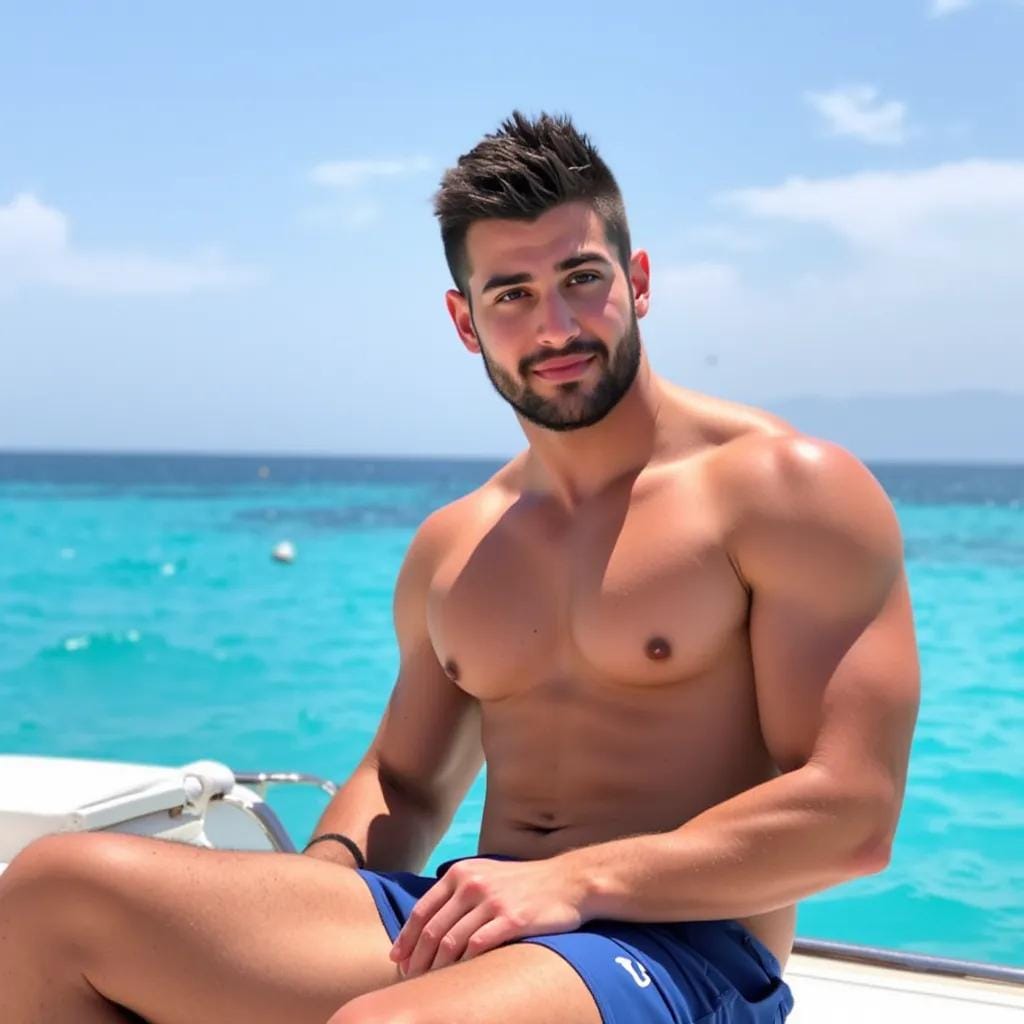 His heart quickened as he took in the sight of Alessandro, his Italian model and muse, his chiseled physique glistening with a fine sheen of sweat. Alessandro climbed the stairs, his eyes never leaving Lucas's face, and settled onto the cushion beside him.