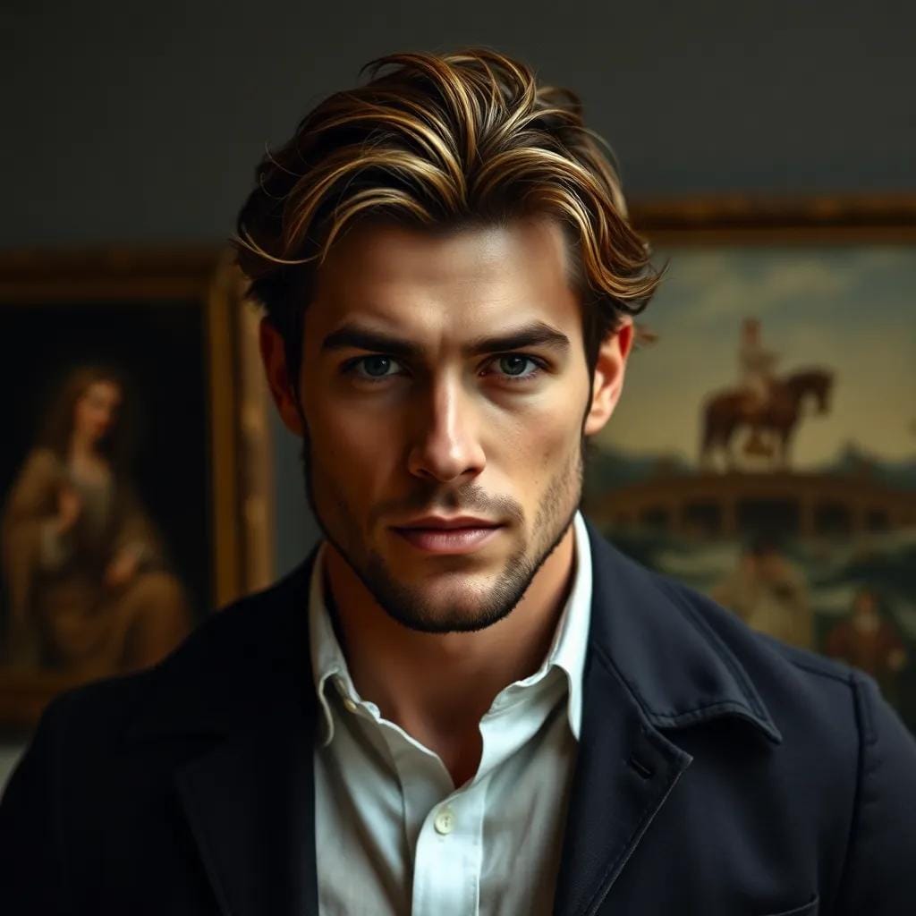 The scholar's heart, on the other hand, beats with a passion that rivals the greatest works of art." As they walked through the gallery, Emilia found herself drawn to his words, his passion, his very presence. They paused before a stunning Rodin, the curves of the sculpture seeming to echo the lines of his face. She felt a flutter in her chest, a sense of connection that went beyond words. "I think I'd like to see more of your treasures," she said, her voice barely above a whisper. He smiled, his eyes glinting with amusement.