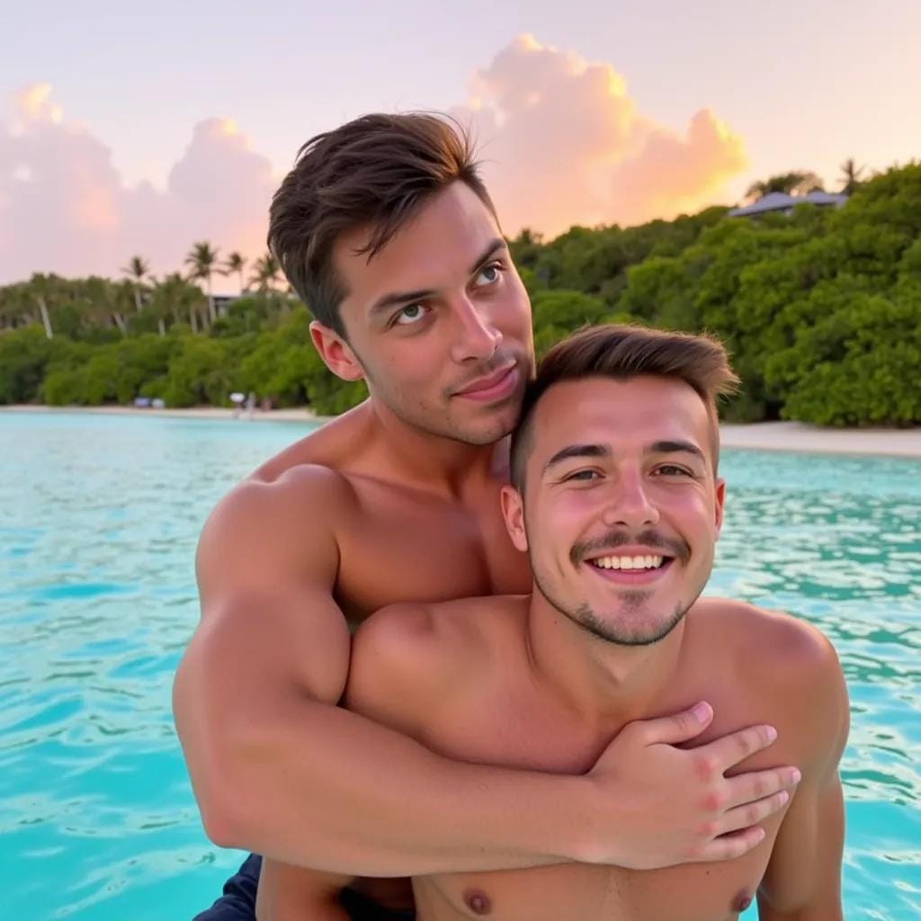 The sun had long since set over the turquoise waters of Bora Bora, casting a warm orange glow over the lush greenery of the overwater bungalow where I found myself, entwined in the arms of the most captivating man I had ever laid eyes on. No amount of careful planning will ever replace dumb luck, I thought to myself as I gazed into the piercing blue eyes of my companion, his chiseled features illuminated by the soft light of the setting sun. His name was Kai, a ruggedly handsome adventurer with a physique honed from years of surfing and sailing the world's most treacherous waters. His broad shoulders and chiseled chest were a sight to behold, and I couldn't help but feel drawn to the raw, untamed energy that seemed to emanate from every pore of his body. As we lay there, wrapped in each other's arms, I felt the gentle rocking of the bungalow's stilts against the waves, a soothing melody that seemed to lull us both into a state of deep relaxation. It was then that Kai began to stir, his fingers tracing the curves of my body with a gentle, exploratory touch that sent shivers down my spine.
