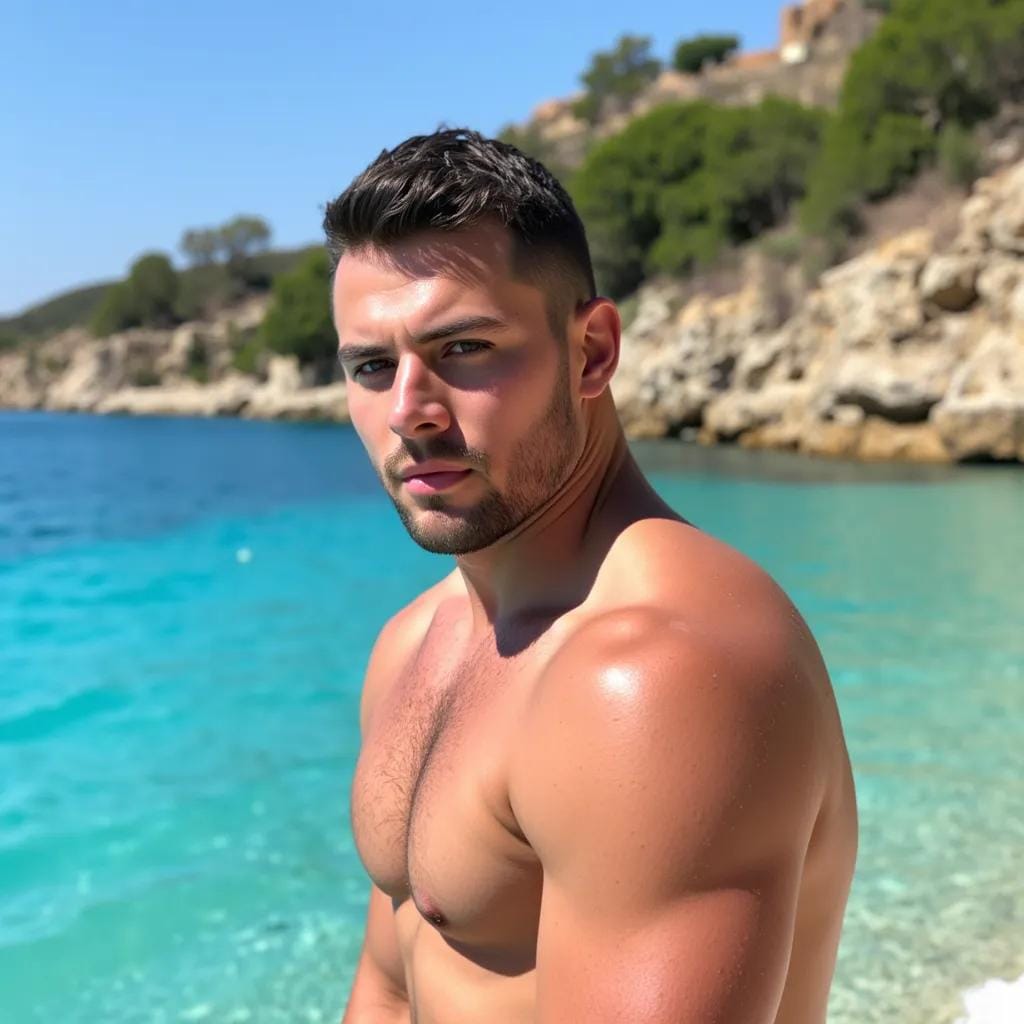 Swim at your own risk, the sign warned, as if the turquoise waters of the secluded cove were a siren's call, beckoning only the bravest and most foolhardy souls to its shores. It was a warning that Alessandro, a ruggedly handsome Italian, was all too eager to ignore. As he strode onto the sun-kissed beach, the warm sand shifting beneath his calloused feet, he felt the weight of his gaze upon him.