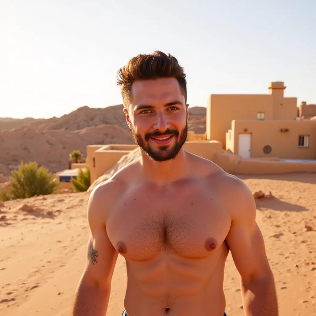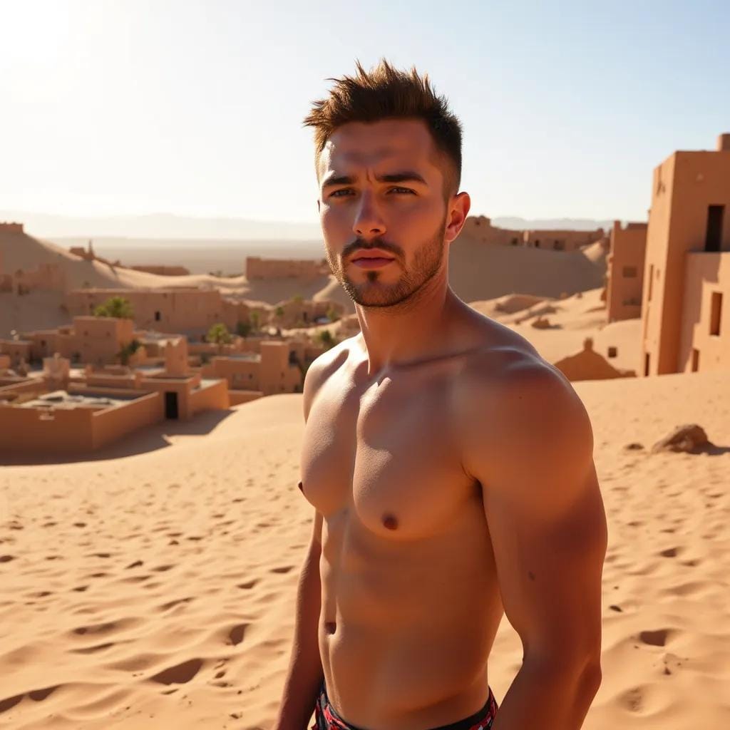 The scorching sun beat down upon the dusty, sun-baked earth of the Moroccan oasis, casting a golden glow over the rugged landscape. It was here, amidst the labyrinthine alleys and ancient architecture, that I first laid eyes on him - a ruggedly handsome stranger with a physique chiseled from the very stone that surrounded us. "You can do very well in speculation where land or anything to do with dirt is concerned," he said with a sly smile, his eyes glinting with a knowing intelligence as he handed me a dusty map.